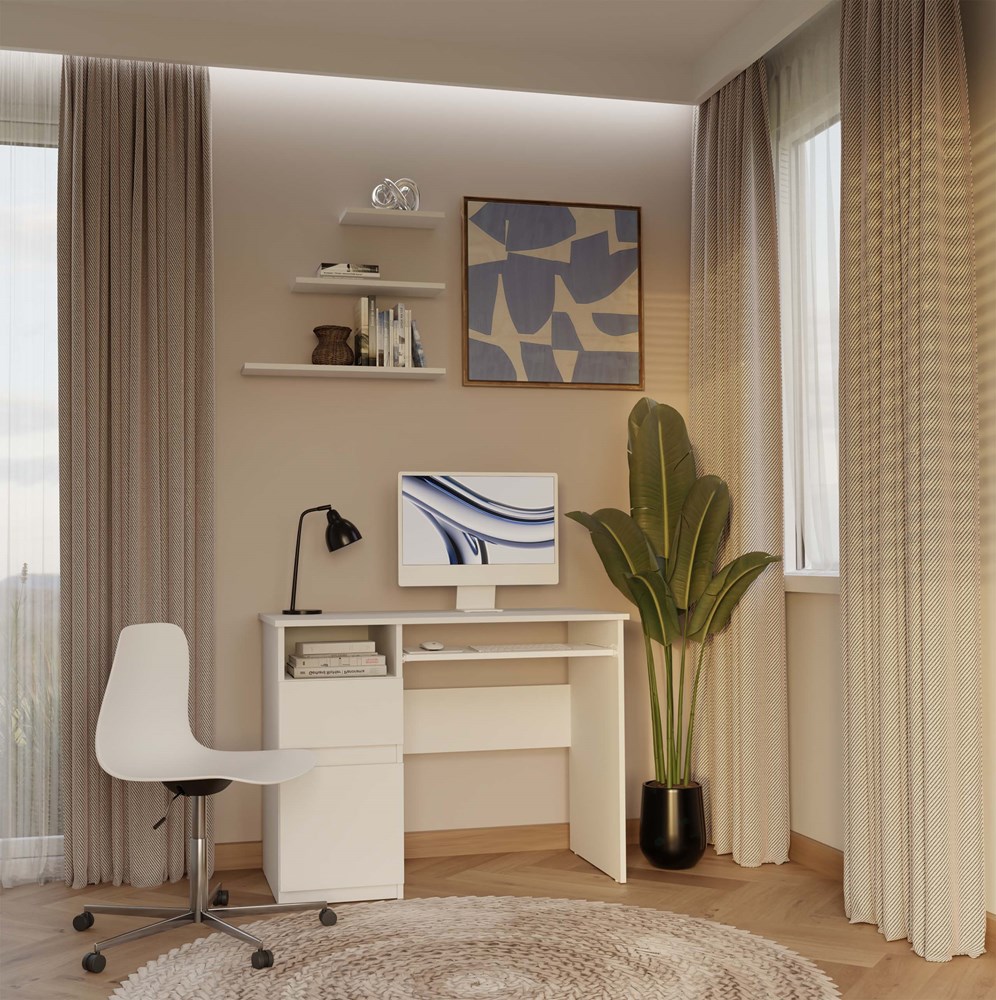 Biurko Porto Lewe to doskonały wybór zarówno do domowego pokoju, jak i do biura, idealnie łącząc funkcjonalność z nowoczesnym designem.