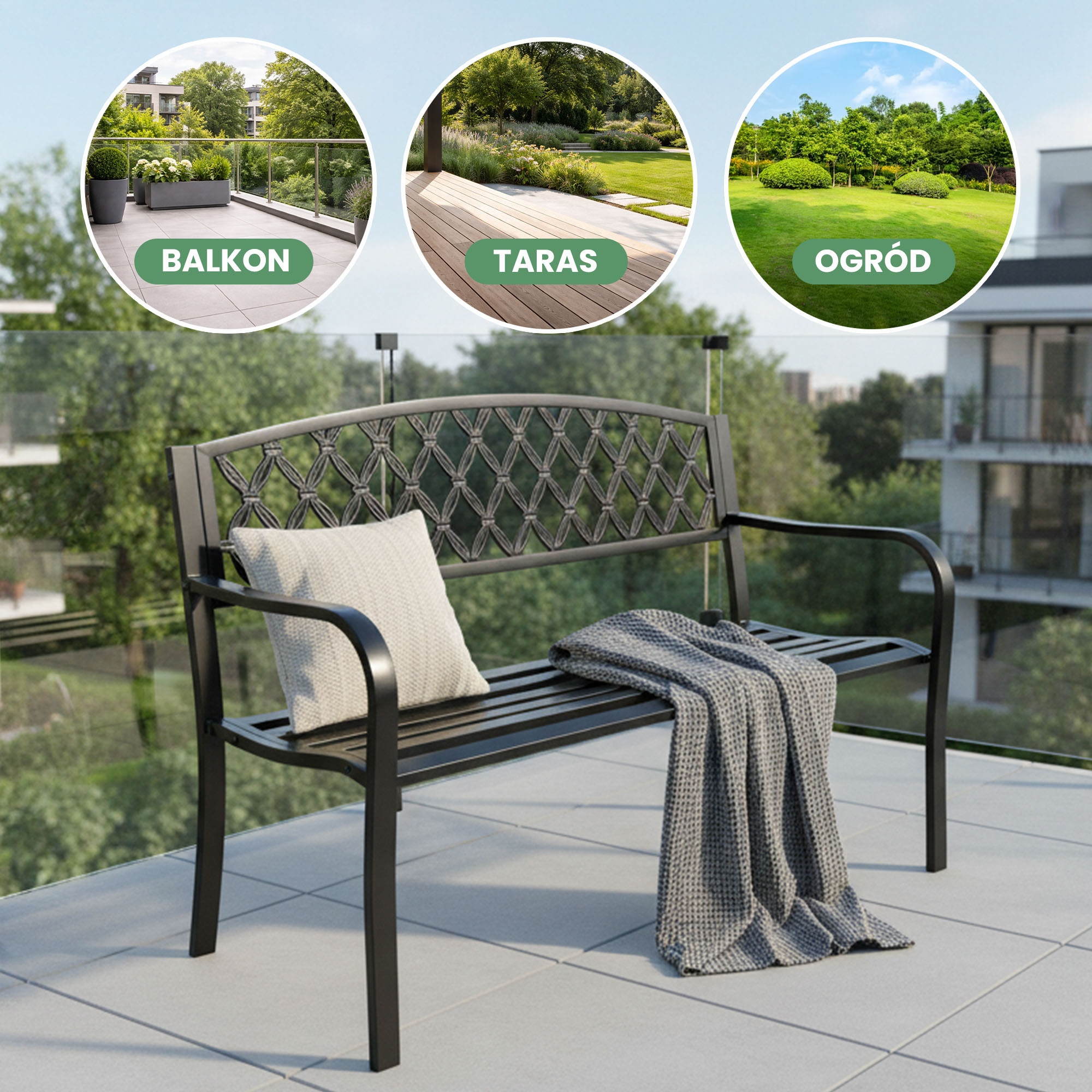 Czarne ławki metalowe to eleganckie i trwałe rozwiązanie do ogrodu, na taras lub do przestrzeni publicznych, takich jak park czy skwer. Wykonane z wytrzymałego metalu, charakteryzują się wysoką odpornością na warunki atmosferyczne oraz stabilną konstrukcją, co zapewnia długotrwałe użytkowanie. Uniwersalny, czarny kolor nadaje im nowoczesny i ponadczasowy wygląd, który doskonale komponuje się zarówno z zielenią ogrodu, jak i z architekturą miejską. Idealne do stworzenia komfortowego miejsca do odpoczynku i relaksu.
