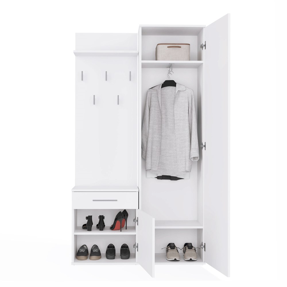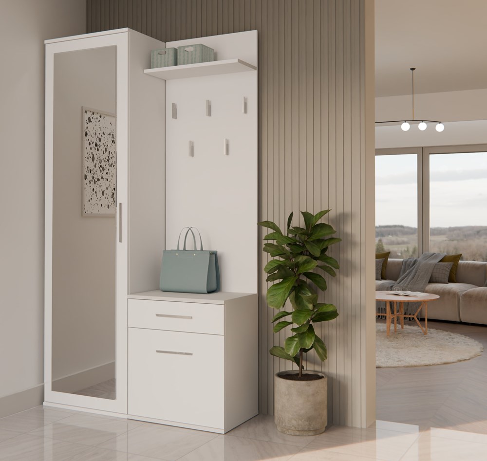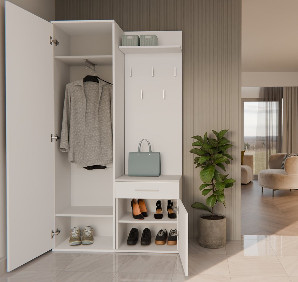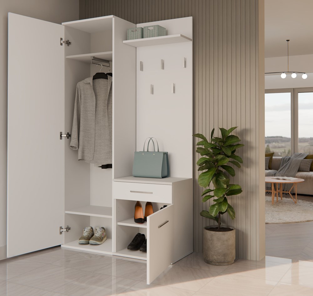 - Szafki z drzwiami oraz szufladą, która pomieści obuwie i drobne przedmioty.