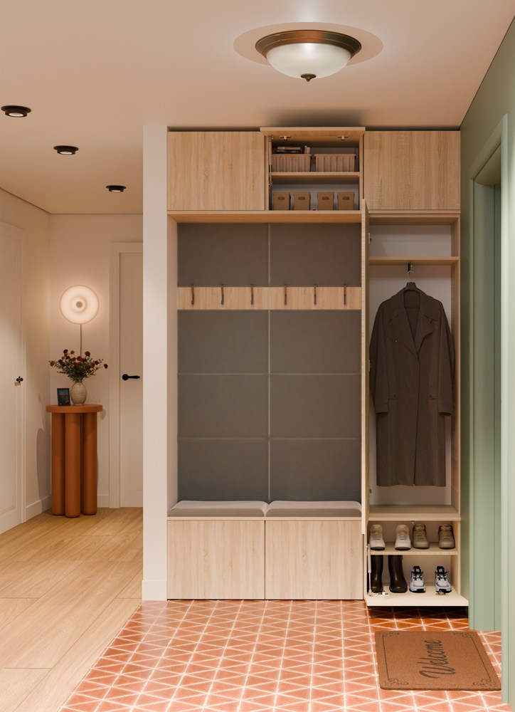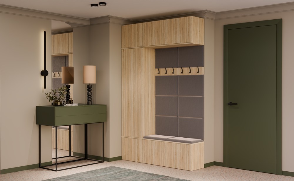 Dzięki przemyślanej, modułowej konstrukcji, każdy z elementów można swobodnie zestawiać, a całość tworzy elegancką i praktyczną przestrzeń wejściową – idealną zarówno do mieszkań, jak i domów jednorodzinnych.