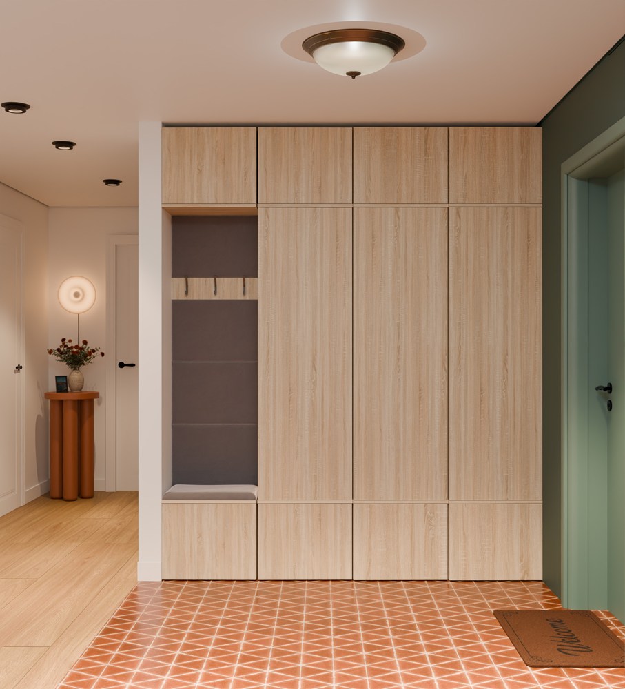 Dzięki przemyślanej, modułowej konstrukcji, każdy z elementów można swobodnie zestawiać, a całość tworzy elegancką i praktyczną przestrzeń wejściową – idealną zarówno do mieszkań, jak i domów jednorodzinnych.