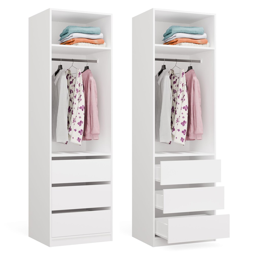 Garderoba Szafa OPENO 1W1P3S BIAŁA Modułowa Regał z Drążkiem 3 Szuflady