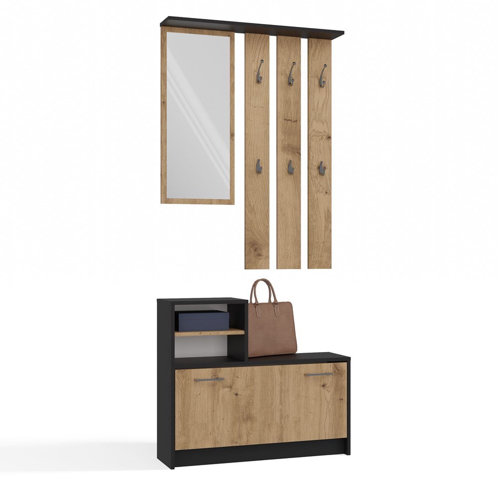 PRAKTYCZNY ZESTAW DO PRZEDPOKOJU WIESZAK Z LUSTREM + SZAFKA NA OBUWIE