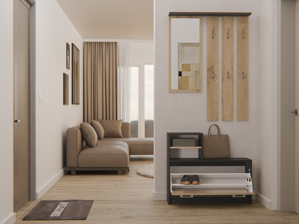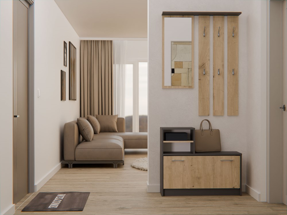 - Szafka na Obuwie: Pomieści 8-9 par butów.