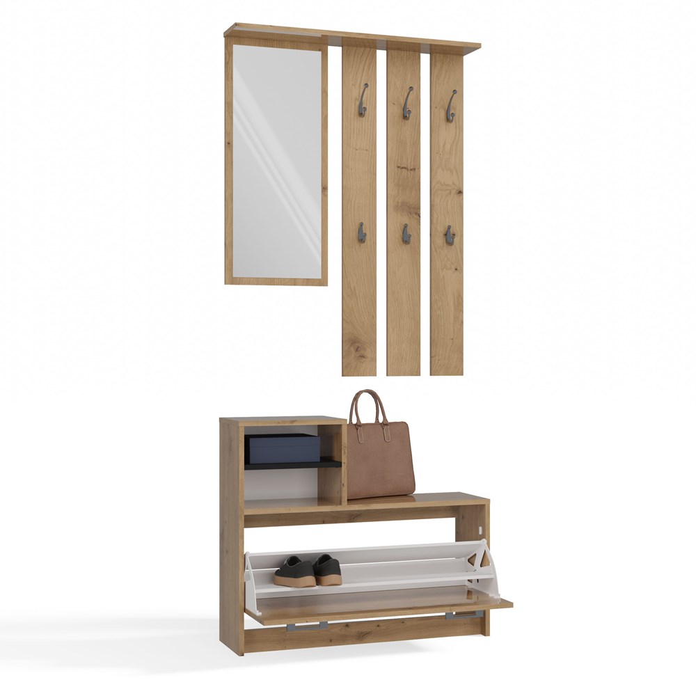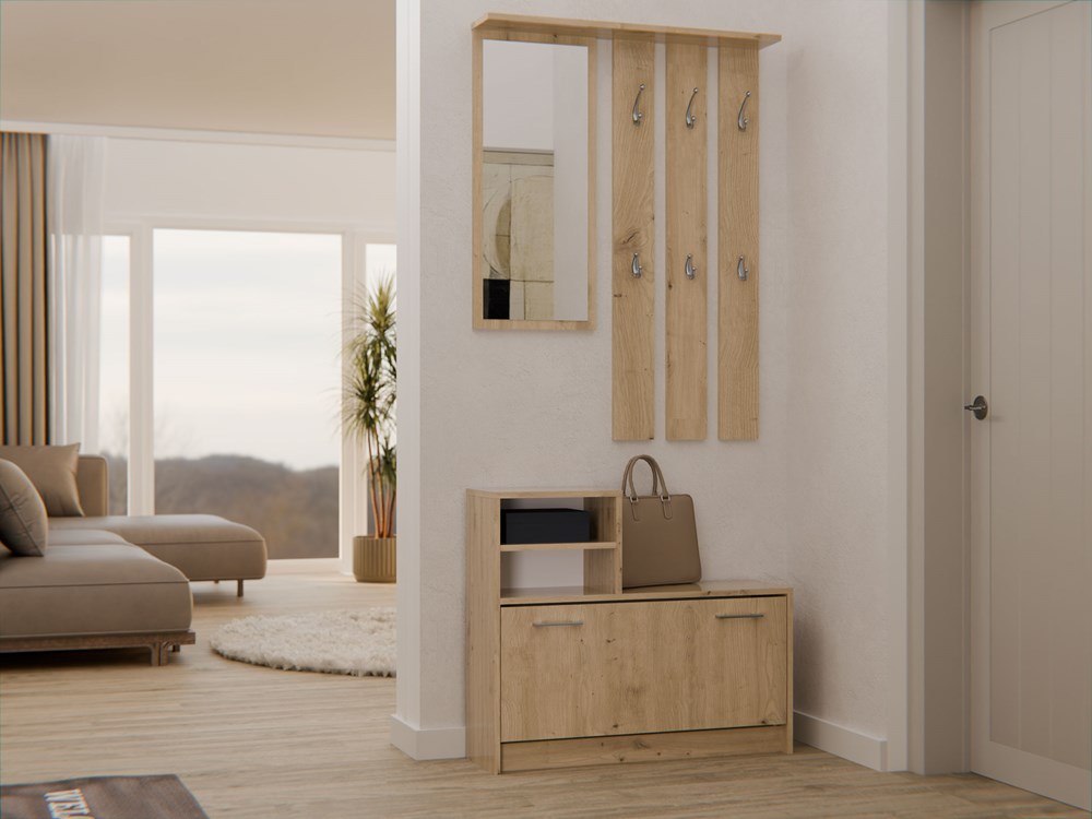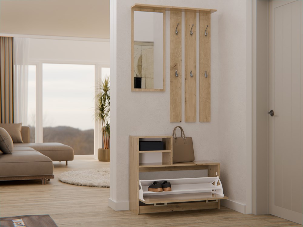 PRAKTYCZNY ZESTAW DO PRZEDPOKOJU WIESZAK Z LUSTREM + SZAFKA NA OBUWIE