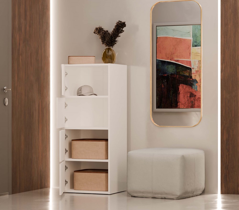 Komoda ALMA BIAŁA Szafka 4 Drzwi 4 Półki