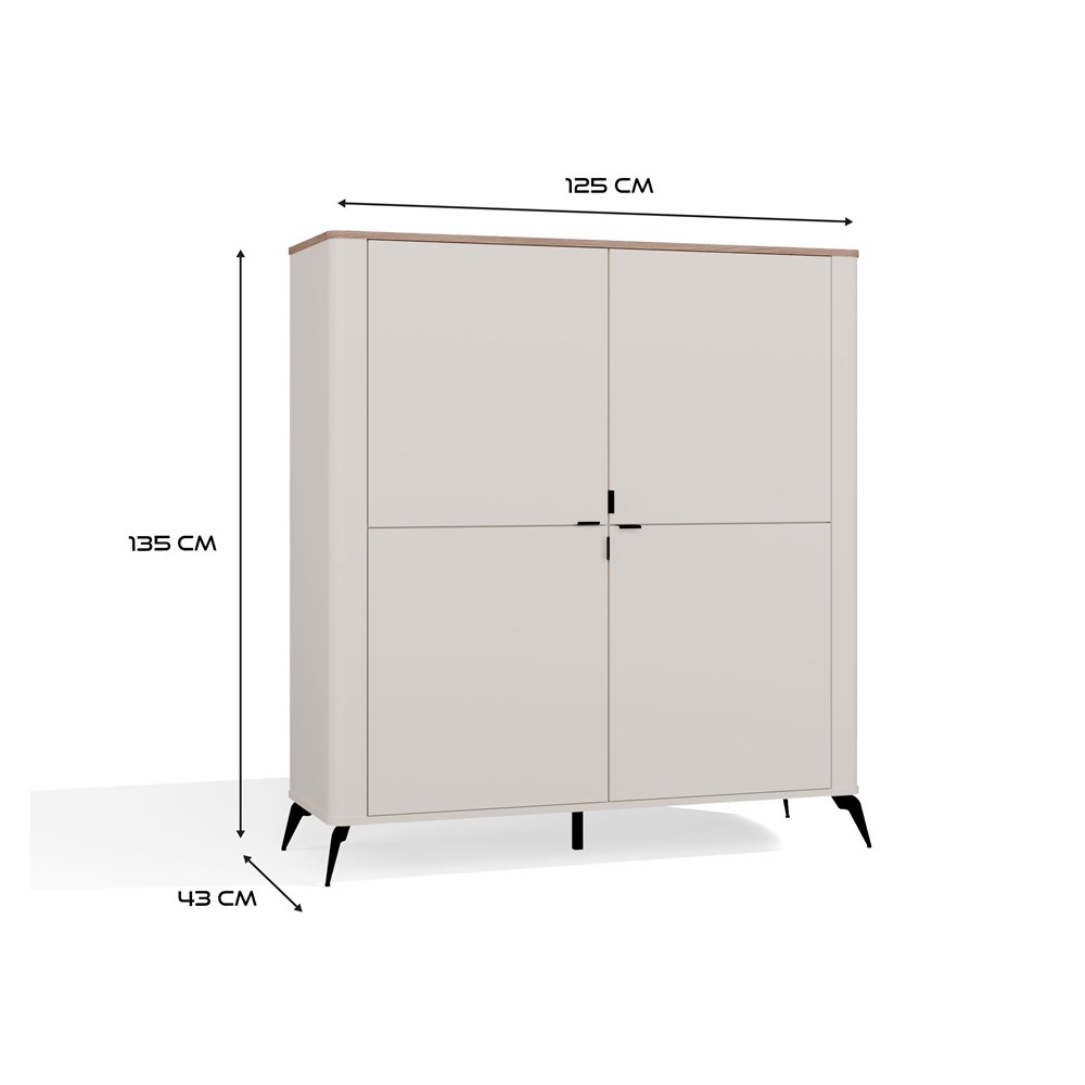 Komoda CORDOBA 4D Kaszmir Beż Dąb Castello Szafka 4 Drzwi 8 Półek Salon