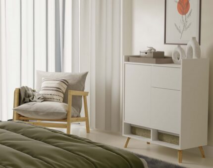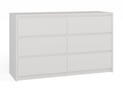 Komoda K 140 w kolorze dębu sonoma i białym, to mebel uniwersalny, mogący pełnić wiele funkcji i doskonale nadający się do różnych pomieszczeń. Świetnie sprawdzi się jako bieliźniarka w sypialni lub pokoju dziecięcym. Może pomieścić także rozmaite drobiazgi, ułatwiając utrzymanie porządku w salonie, skryć rzadziej używane naczynia w jadalni, a nawet służyć za schowek dla czapek, szalików czy kluczy w przedpokoju.