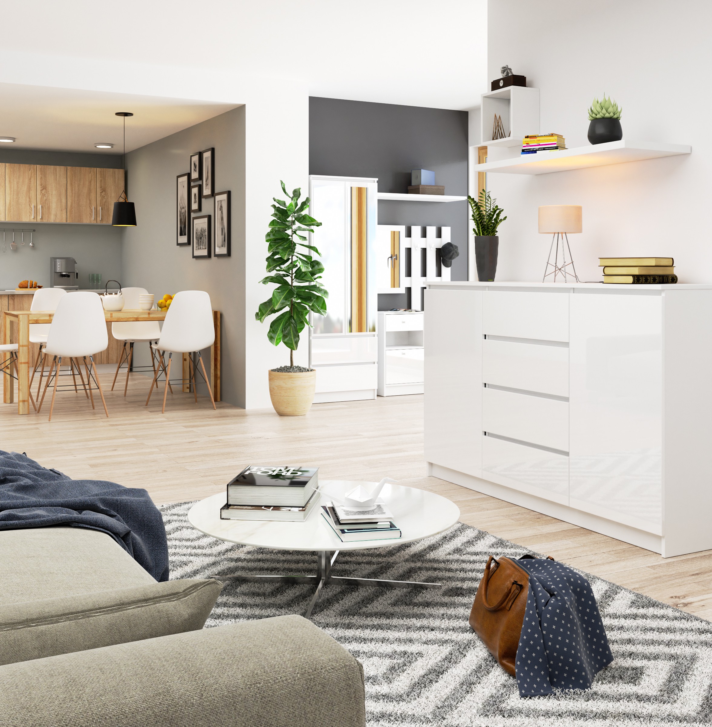 – Korpus komody wykonany z płyty laminowanej biały półmat 16mm odpornej na ścieranie