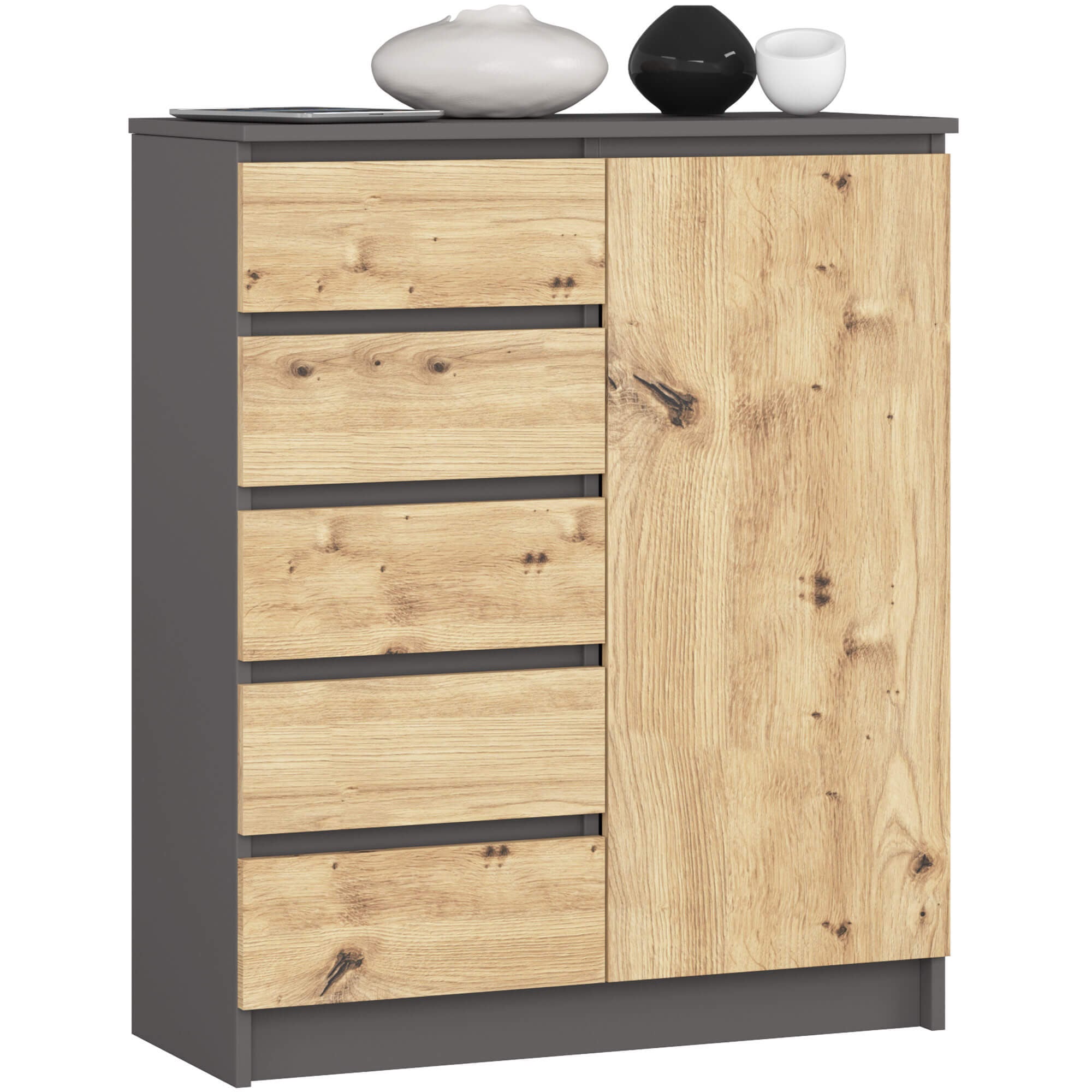 KOMODA K80 1D 5SZ PK GRAFIT SZARY / DĄB ARTISAN