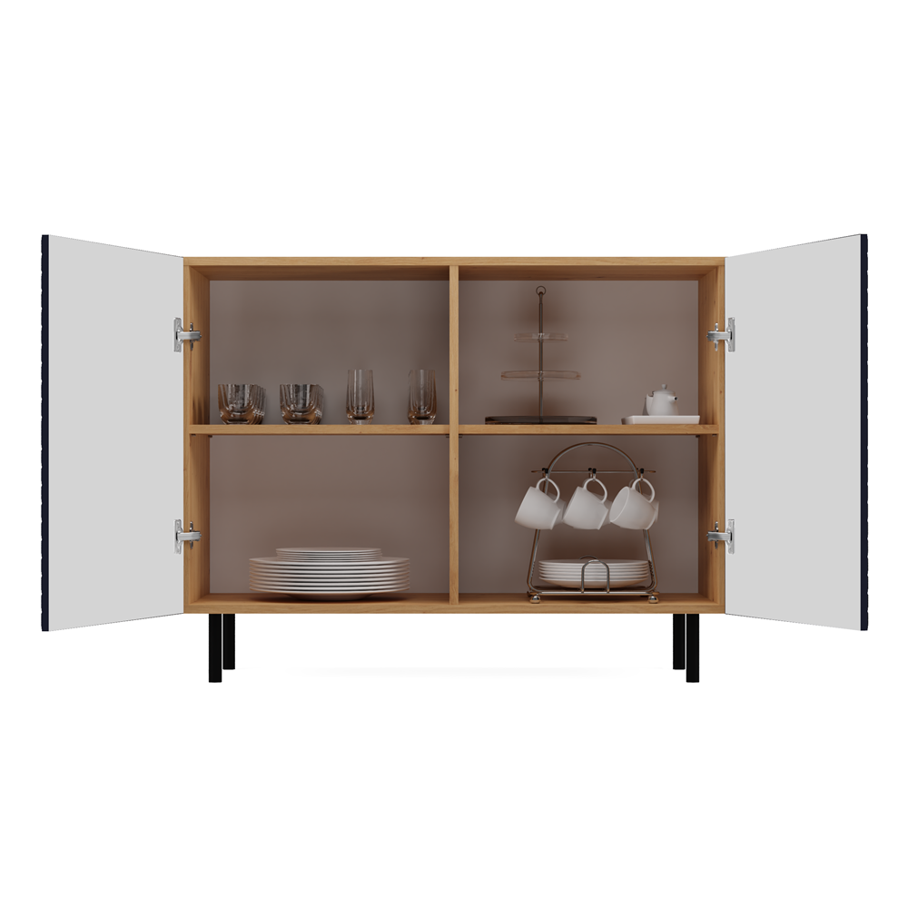 Dużym atutem są okrągłe metalowe nogi o wysokości 13 cm, które nadają wizualnej lekkości całej konstrukcji i sprawiają, że komoda jest stabilna.