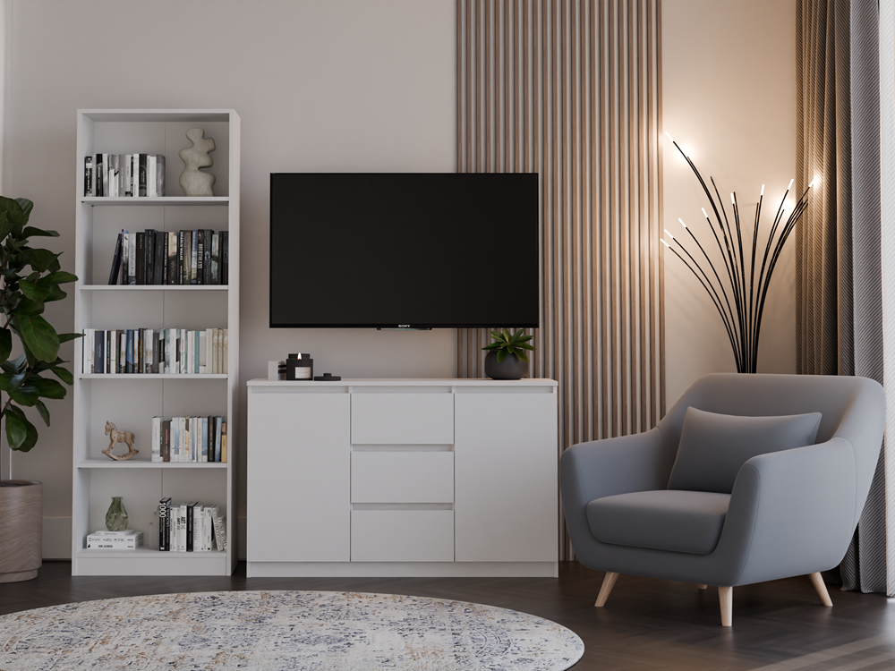 Nowoczesna komoda 2D3S to funkcjonalny i pakowny mebel, który urządzi wnętrze Twojej sypialni, salonu lub pokoju dziecka.
