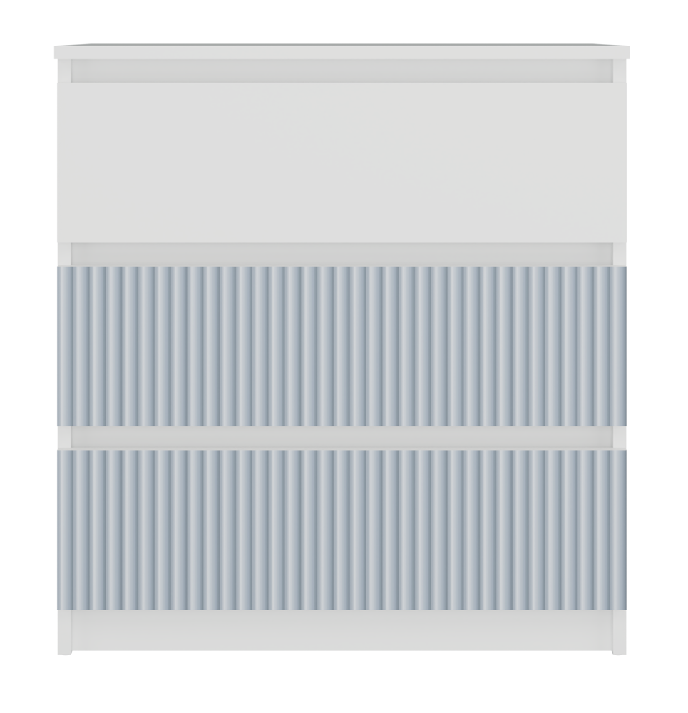 - Front dwóch dolnych szuflad – Pionowe wzory w kolorze niebieskim nadrukowane w nowoczesnej technologii