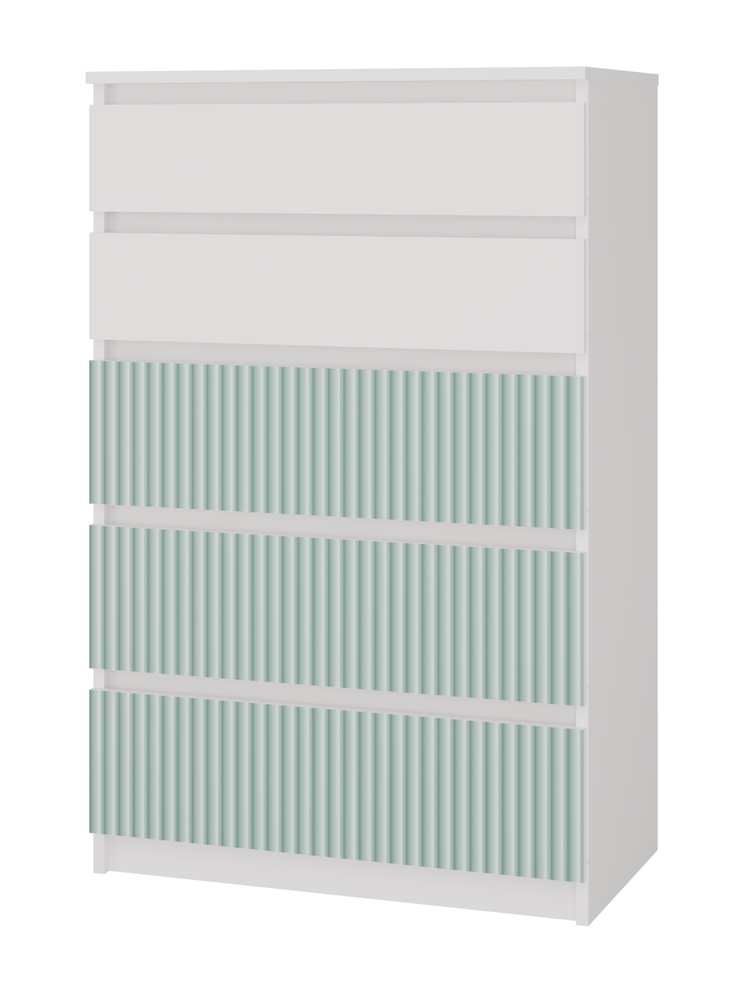 - Front trzech dolnych szuflad – Pionowe wzory w kolorze miętowym nadrukowane w nowoczesnej technologii