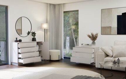 Nowoczesna komoda z kolekcji MALWA to funkcjonalny i pakowny mebel, idealny do Twojej sypialni, salonu lub pokoju dziecka.
