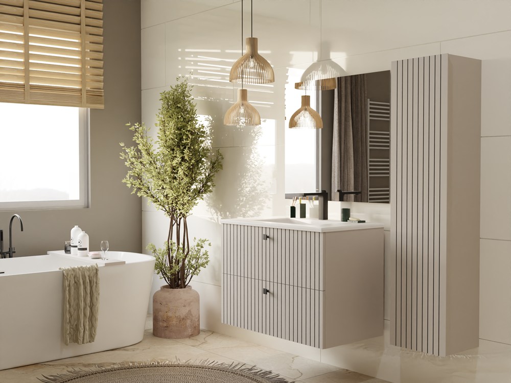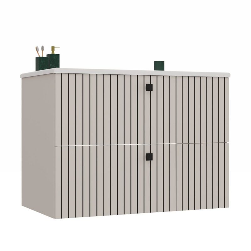 - Bezuchwytowe, fronty szuflad zapewniają wygodne użytkowanie i podkreślą modernistyczny charakter wnętrza.