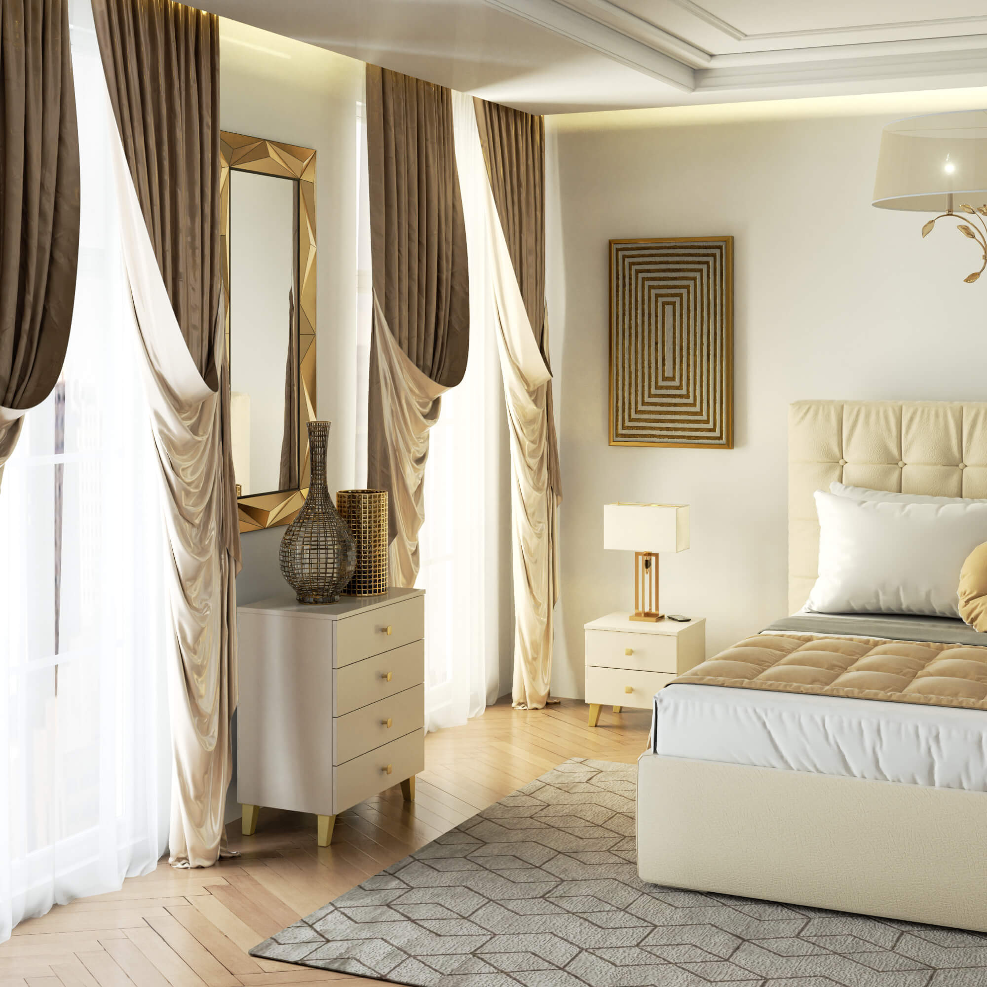 Niewielka komoda to element wyposażenia, który znajdzie zastosowanie w każdym pomieszczeniu. Nowoczesne barwy, solidna konstrukcja i staranne wykonanie zaowocowało powstaniem szafki, która sprawdzi się na przykład w przedpokoju, pokoju dziennym czy młodzieżowym, a także w sypialni. Może być wykorzystana również w pomieszczeniu biurowym, gdzie umożliwi przechowywanie licznych dokumentów oraz innych artykułów o charakterze biurowym. Komoda składa się z 4 szuflad. Mebel łączy w sobie kolorystykę kaszmir i złoty.