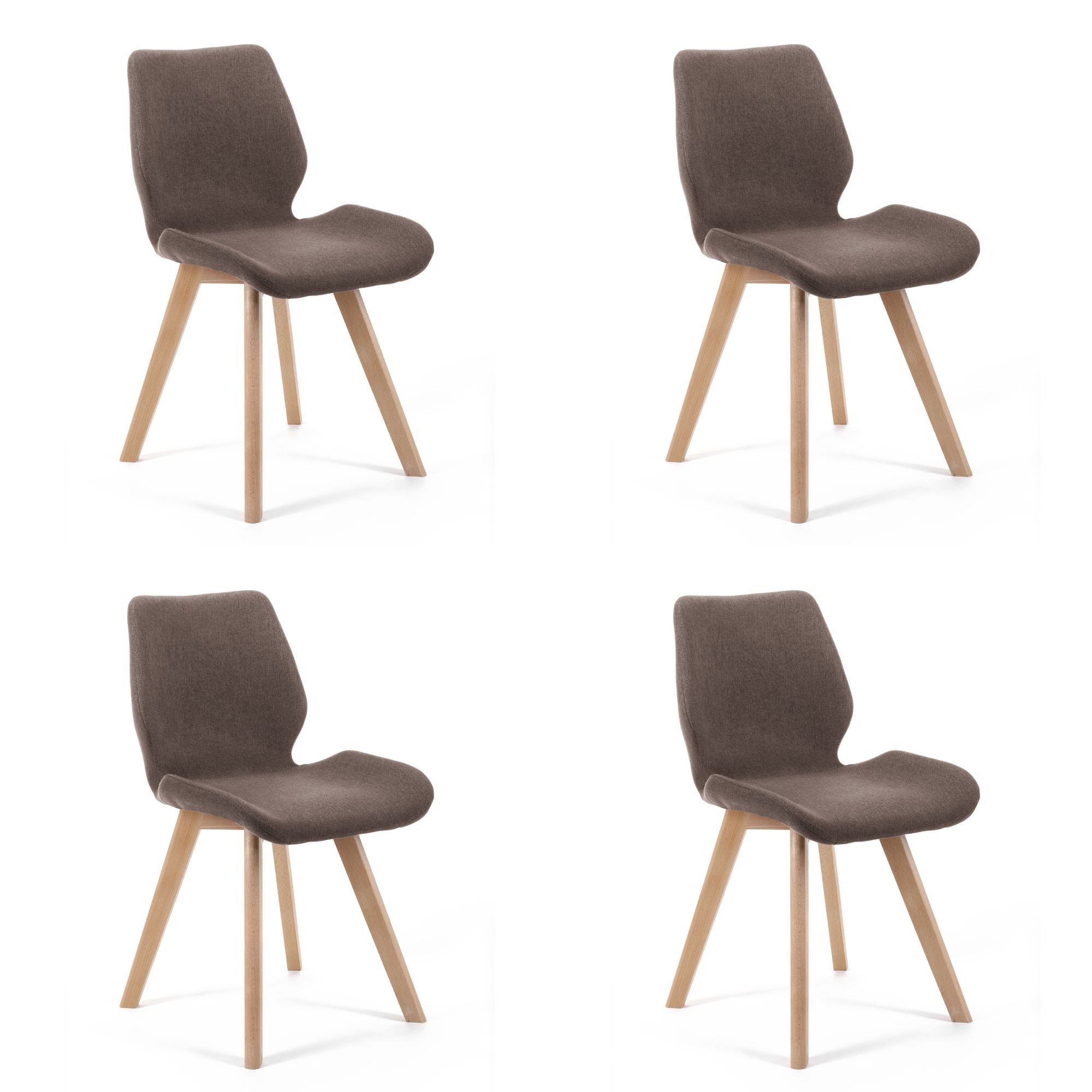Brązowe materiałowe krzesło w stylu Skandynawskim. Krzesło dzięki obiciu materiałowemu jest wygodne i miękkie w dotyku. Drewniane nogi sprawiają, że krzesło jest eleganckie i nowoczesne jednocześnie. Krzesło SJ.0159 idealnie pasuje do gabinetu, biura, sypialni, salonu lub poczekalni. Krzesło sprzedawane jest w kompletach – 4 szt. w jednym opakowaniu.