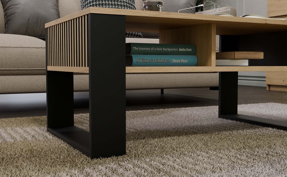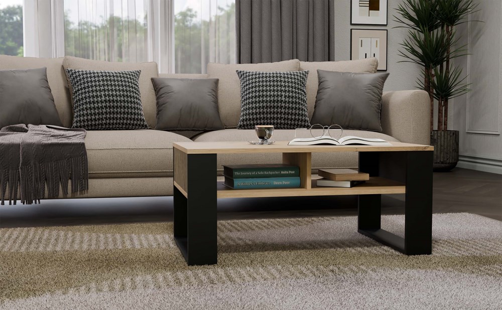 Ława Modern 2P SLIM DĄB ARTISAN CZARNY