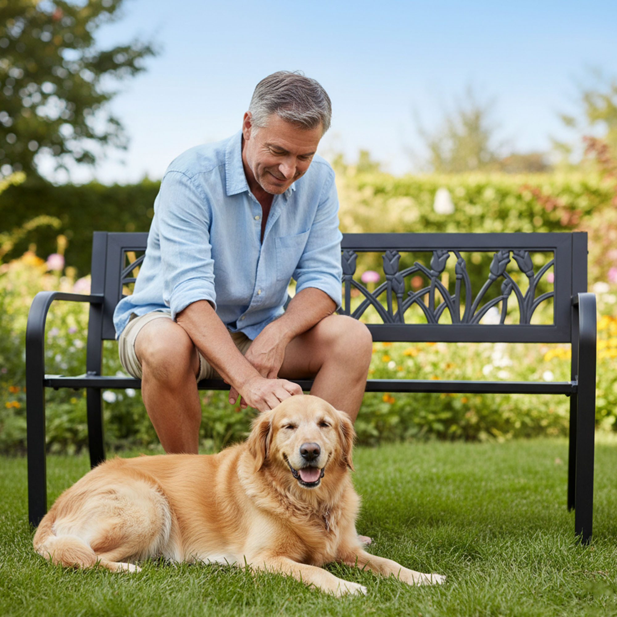 Ławka ogrodowa parkowa LISSA to elegancki mebel ogrodowy w stylu angielskim, który zachwyca dekoracyjnym motywem tulipanów na oparciu. Wykonana z trwałego metalu i plastiku, doskonale sprawdzi się w ogrodzie, tarasie czy na balkonie. Dzięki stalowej konstrukcji i solidnym nogom, ławka jest lekka, stabilna oraz odporna na warunki atmosferyczne. Zaprojektowana z myślą o komforcie, posiadająca siedzisko z 5 listew stalowych, ławka LISSA zapewnia wygodę i funkcjonalność. Wytrzymała na obciążenie do 320 kg, produkt jest nie tylko praktyczny, ale również atrakcyjny wizualnie dzięki geometrycznym wzorom ozdabiającym poszczególne elementy.