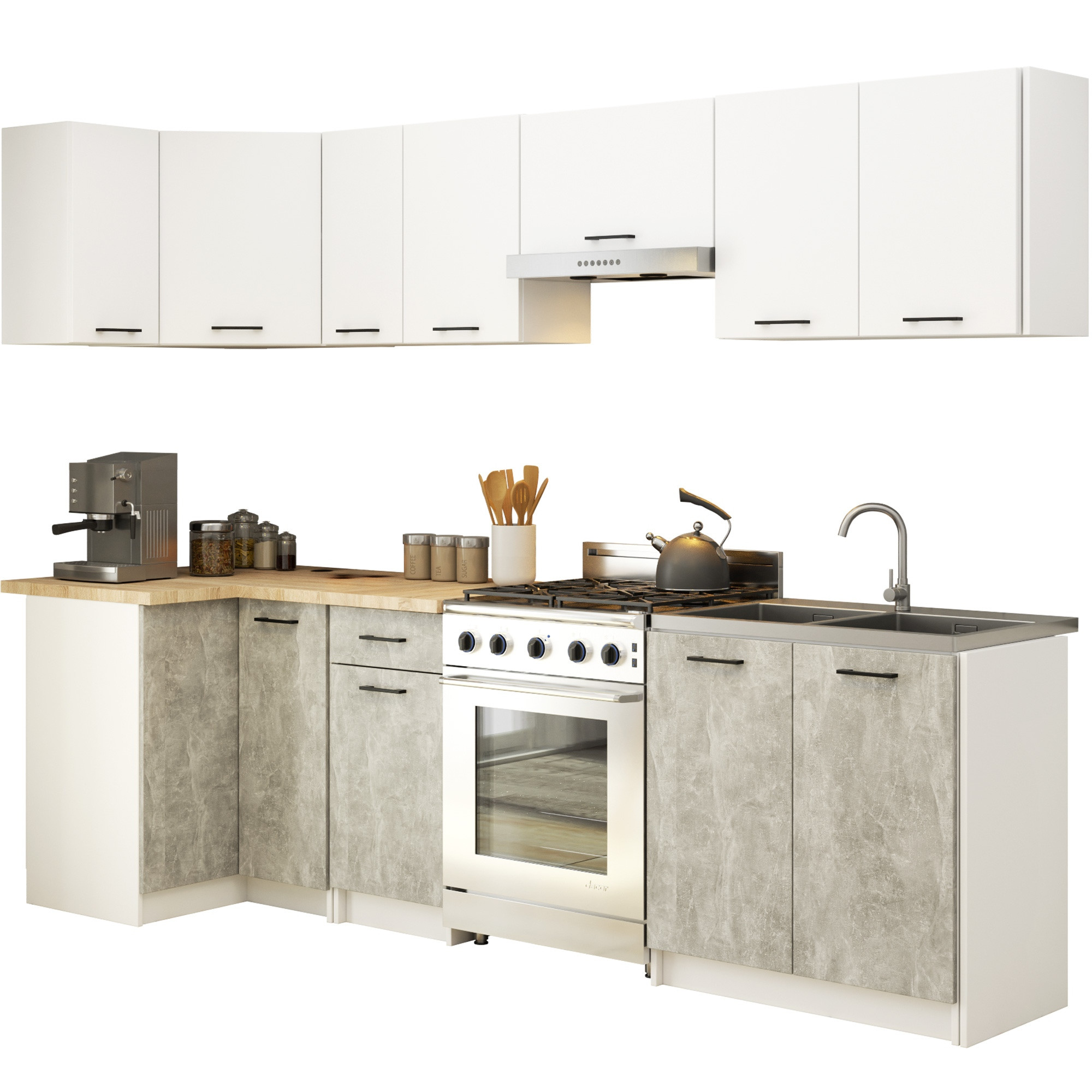 MEBLE KUCHENNE ZESTAW NAROŻNY OLIWIA 3M BIAŁY-BETON