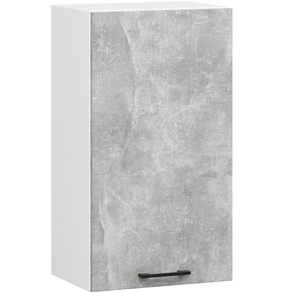 Szafki wykonane z płyty laminowanej w kolorze biały/beton