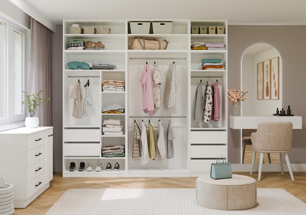 Połącz je z modułami dolnymi i stwórz kompletną zabudowę garderoby.