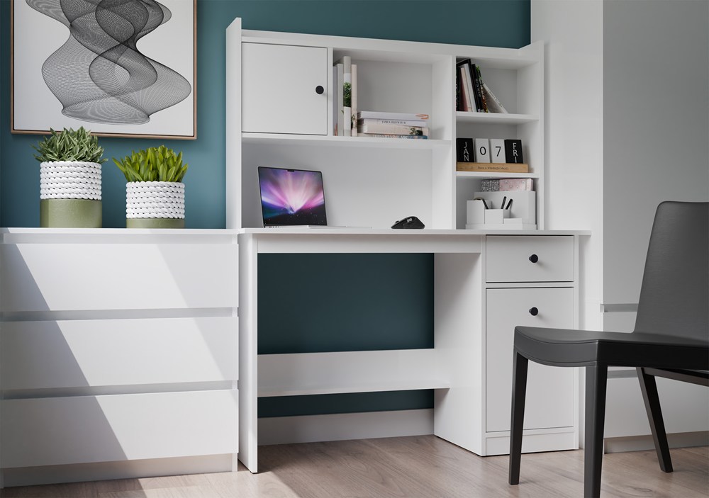 - Nowoczesna, minimalistyczna forma – nadstawka idealna do biurek Chester z naszej oferty, ale można ją wykorzystać też z innymi biurkami o szerokości 120 cm