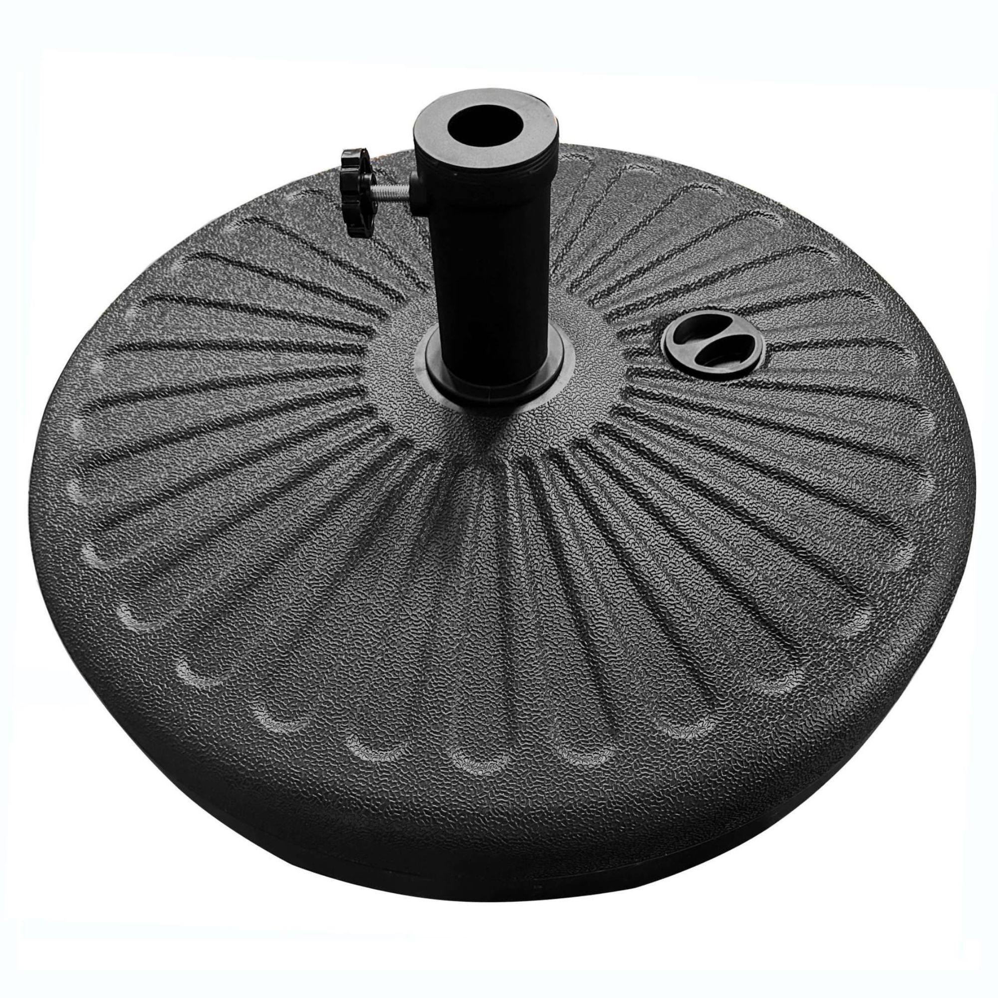Podstawa pod parasol UB55 spełnia normę EN-581, gwarantującą wysoką jakość oraz trwałość. Odporna na wilgoć, działanie promieni słonecznych i zmienne warunki pogodowe, pozostanie niezawodnym elementem Twojego ogrodu przez wiele sezonów. Ten czarny stojak o wadze 3,1 kg po napełnieniu może ważyć aż 28 kg, co zapewni niezbędną stabilność. Prosty montaż pozwoli Ci szybko i łatwo przygotować swoje miejsce wypoczynku na świeżym powietrzu.