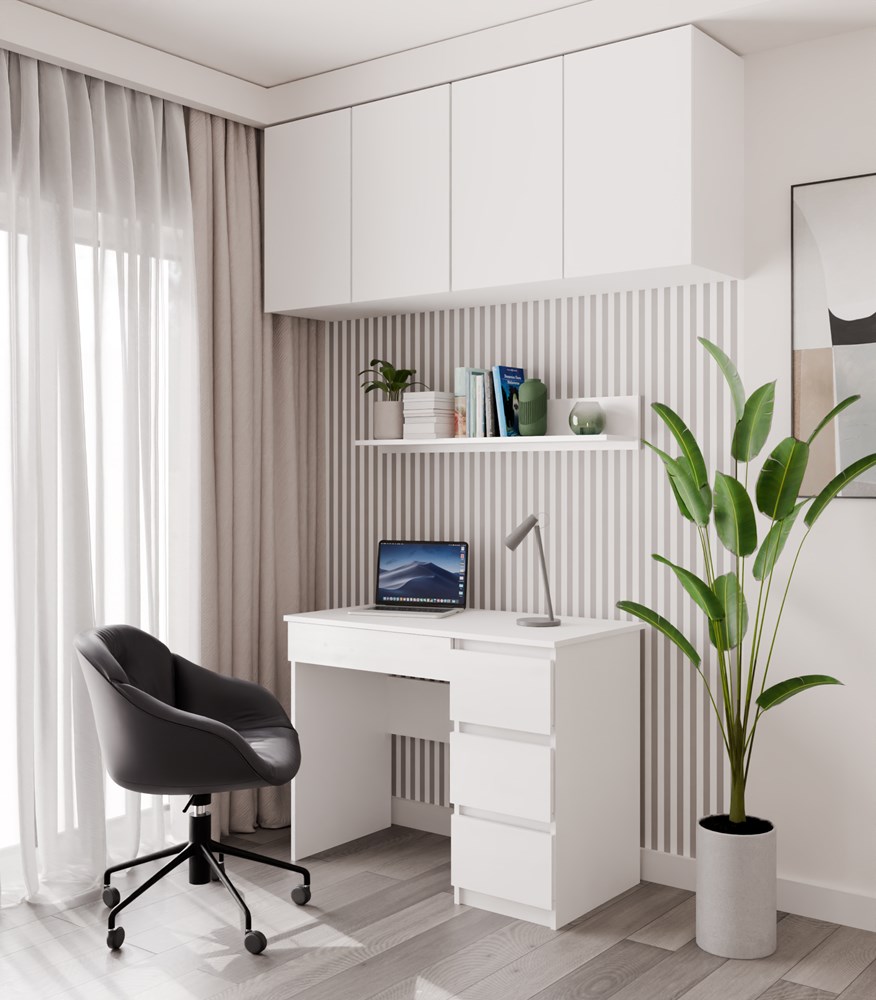 • neutralna biel – łatwa do zestawienia z innymi meblami