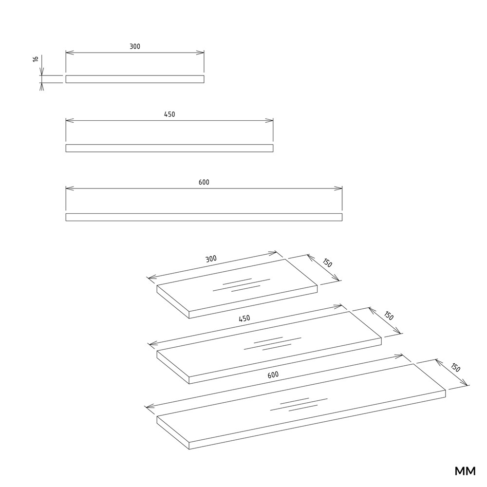 KOMPLET 3 PÓŁEK ŚCIENNYCH