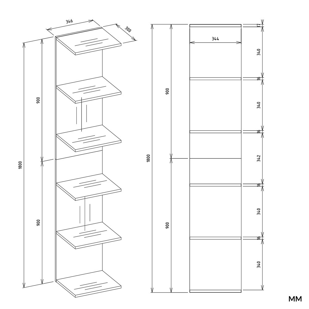 Mebel wyposażony jest w 6 otwartych półek, które umożliwiają wygodne przechowywanie książek, dokumentów, dekoracji oraz innych codziennych przedmiotów. Wysoka konstrukcja sprawia, że regał oferuje dużo przestrzeni użytkowej przy zachowaniu kompaktowych wymiarów.
