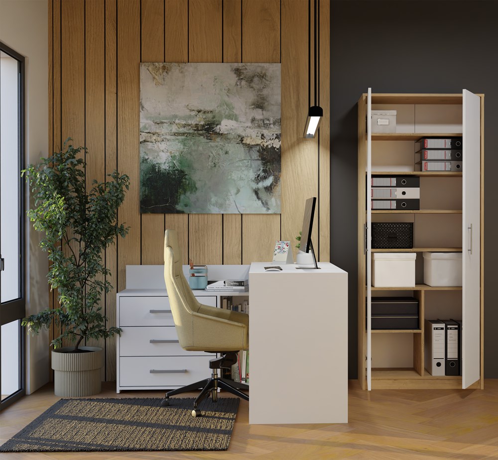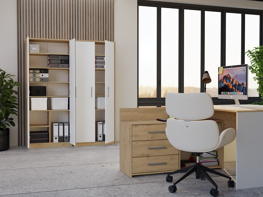 Regał Biurowy OLIV 2D 2 Drzwi Do Biura Do Gabinetu Salonu DĄB ARTISAN BIEL