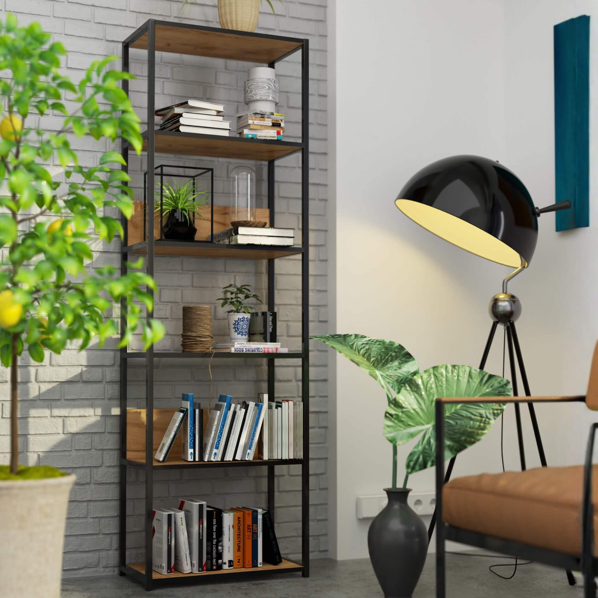 Regał industrialny metalowy to praktyczny i nowoczesny mebel, który sprawdzi się zarówno w salonie jak i biurze. Stelaż w kolorze czarnym. Półki regału zostały wykonane z płyty laminowanej o grubości 16 mm w kolorze dąb craft. To trwały i wytrzymały materiał, wyróżniający się wysoką odpornością na ścieranie. Krawędzie zostały dodatkowo zabezpieczone obrzeżem ABS, dzięki czemu mebel cały czas będzie się dobrze prezentował, nawet przy bardzo intensywnym codziennym użytkowaniu. Całość prezentuje się bardzo nowocześnie.