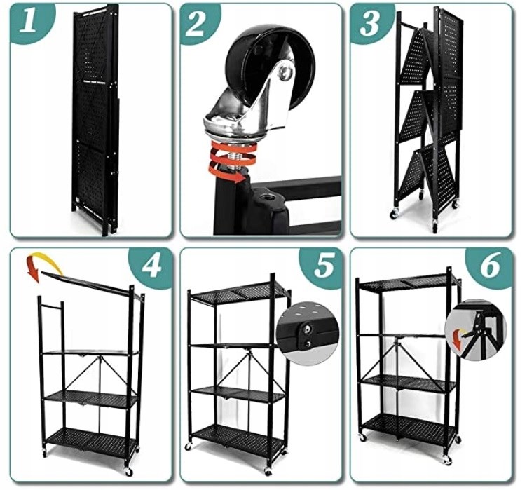 SKŁADANY REGAŁ MAGAZYNOWY / KUCHENNY NA KÓŁKACH 5 PÓŁEK