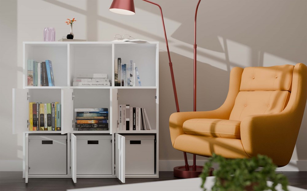 - 9 równych komór – idealnych na książki, pudełka, dokumenty, zabawki czy dekoracje