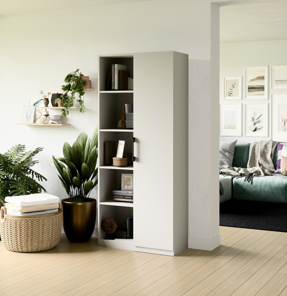 - Część półek schowana za drzwiami
