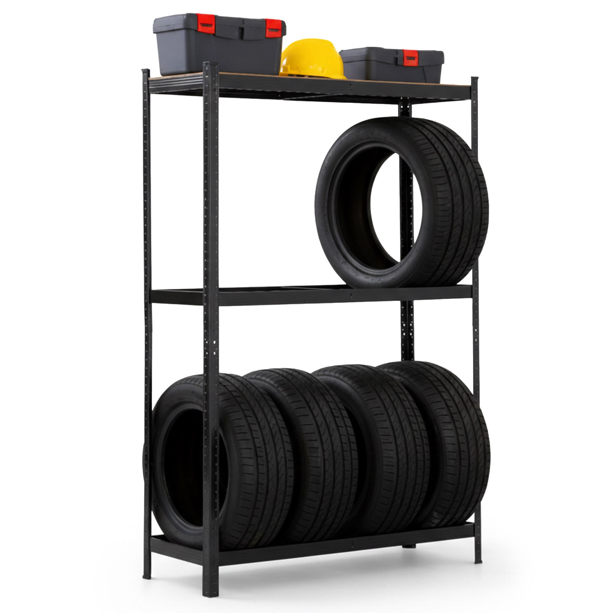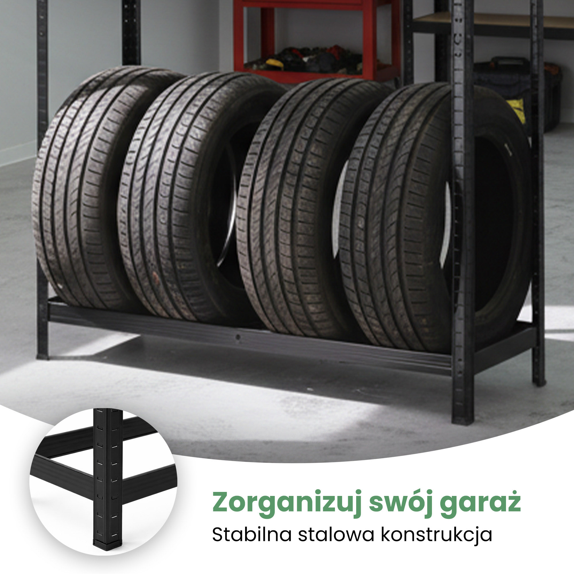 Regał na opony metalowy garażowy 120 cm 3 półki 120x40x180 Czarny