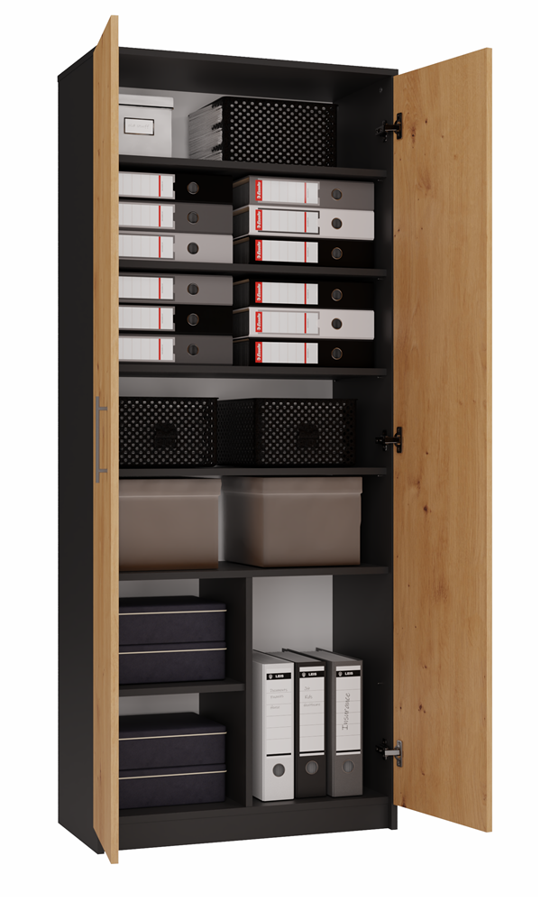 Regał OLIV 2D to praktyczny mebel. Sprawdzi się tam gdzie potrzebujesz. Salon, pokój dziecięcy, biuro, pracownia – to tylko część pomieszczeń gdzie szafa OLIV spełni swoje zadanie. Dokumenty, książki, segregatory i wiele innych rzeczy dzięki dużej ilości półek w końcu znajdzie swoje miejsce.