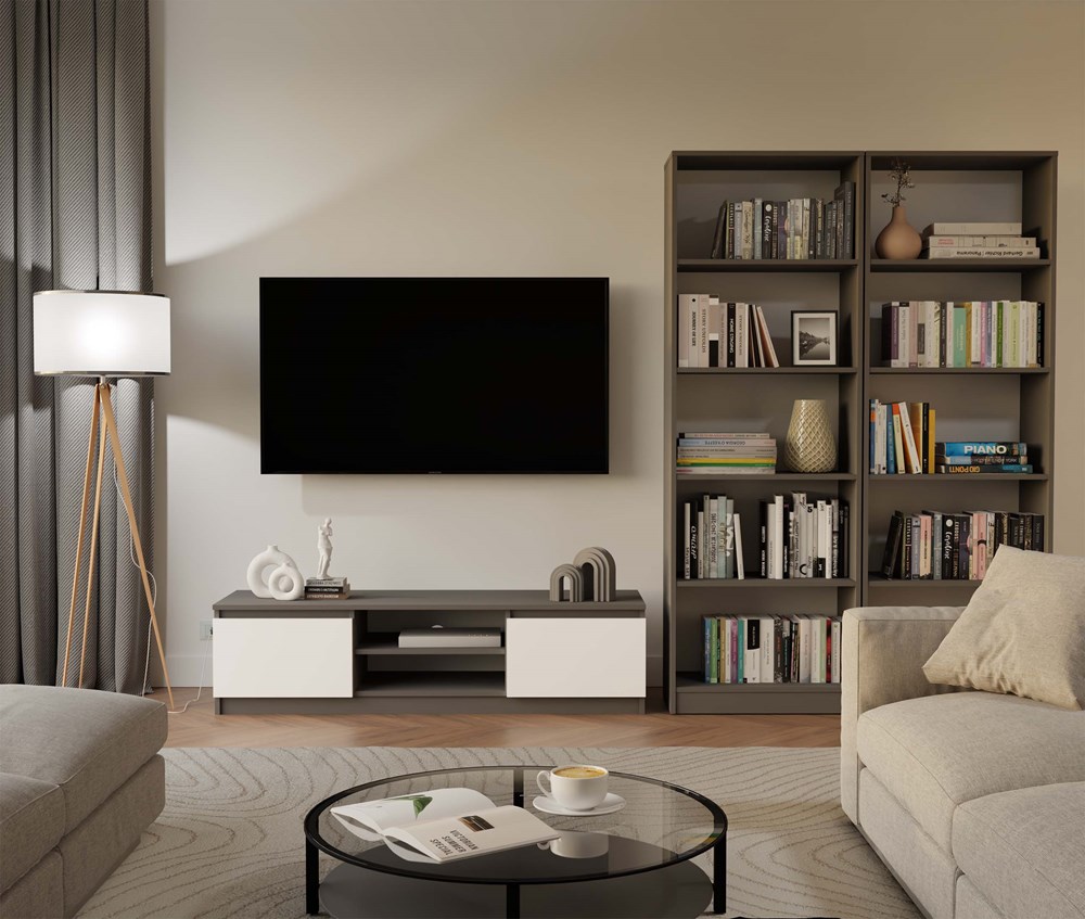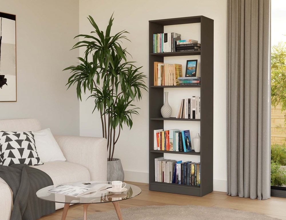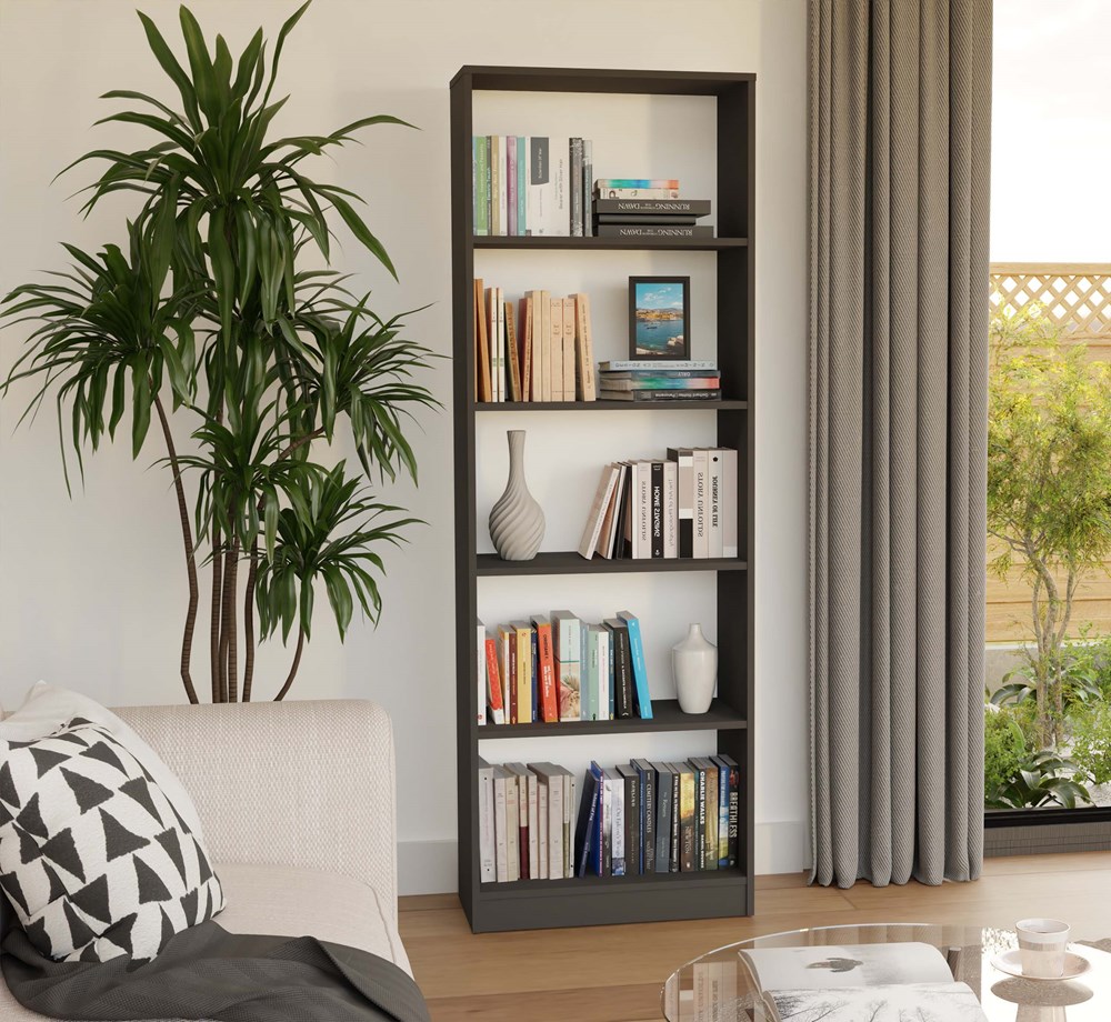 Regał R60 to nowoczesna propozycja do przechowywania książek, dokumentów, zabawek czy dekoracji. Minimalistyczna bryła w eleganckim kolorze antracytu, nadaje wnętrzu nowoczesny i uporządkowany wygląd. Doskonale sprawdzi się zarówno w domowym biurze, salonie, pokoju dziecka, jak i w biblioteczce lub gabinecie.