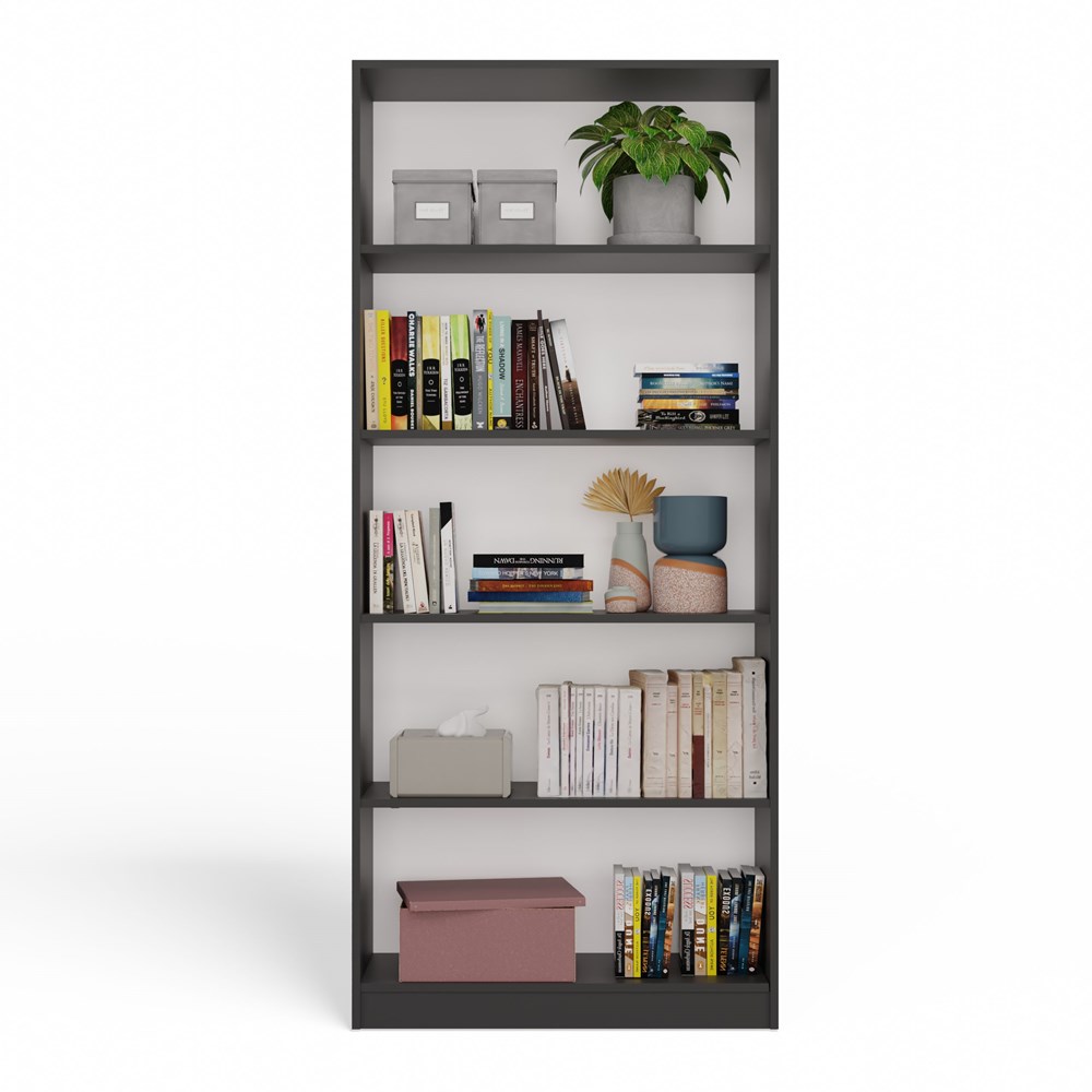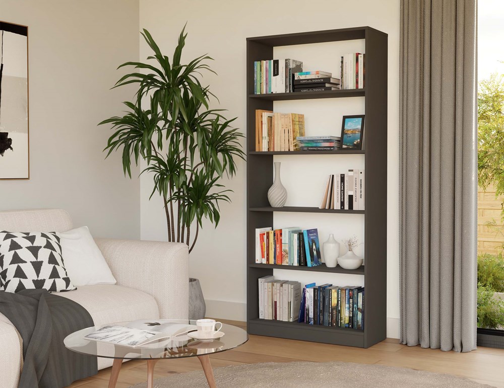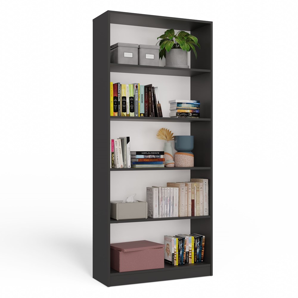 Regał R80 to nowoczesna propozycja do przechowywania książek, dokumentów, zabawek czy dekoracji. Minimalistyczna bryła w eleganckim kolorze antracytu, nadaje wnętrzu nowoczesny i uporządkowany wygląd. Doskonale sprawdzi się zarówno w domowym biurze, salonie, pokoju dziecka, jak i w biblioteczce lub gabinecie.