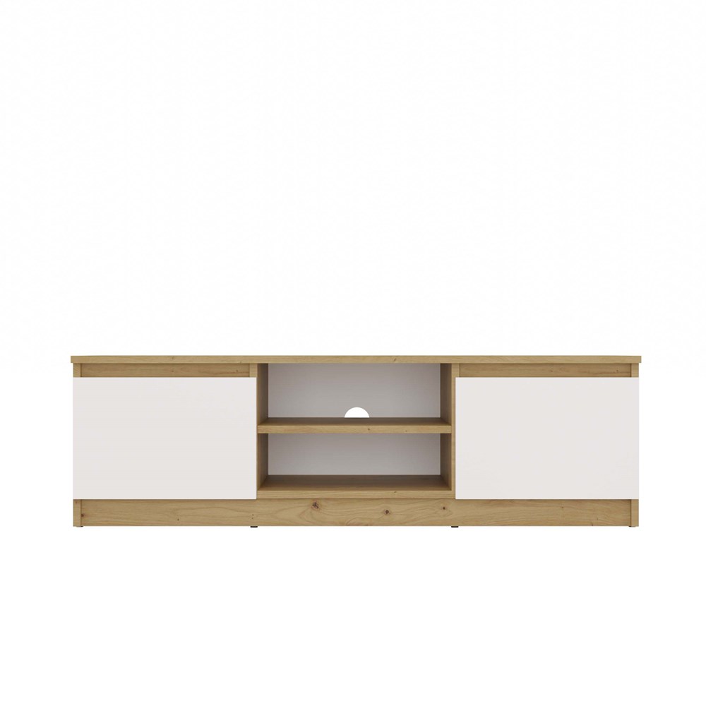 - Otwarta półka pozwala na wygodne ustawienie sprzętu RTV, a umieszczony w jej plecach otwór ułatwia dyskretny montaż okablowania.