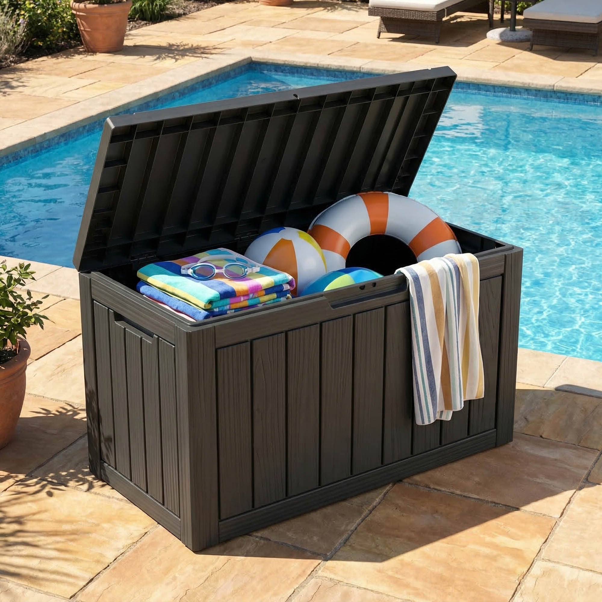 Skrzynia ogrodowa wodoszczelna pojemność 117 litrów Szara