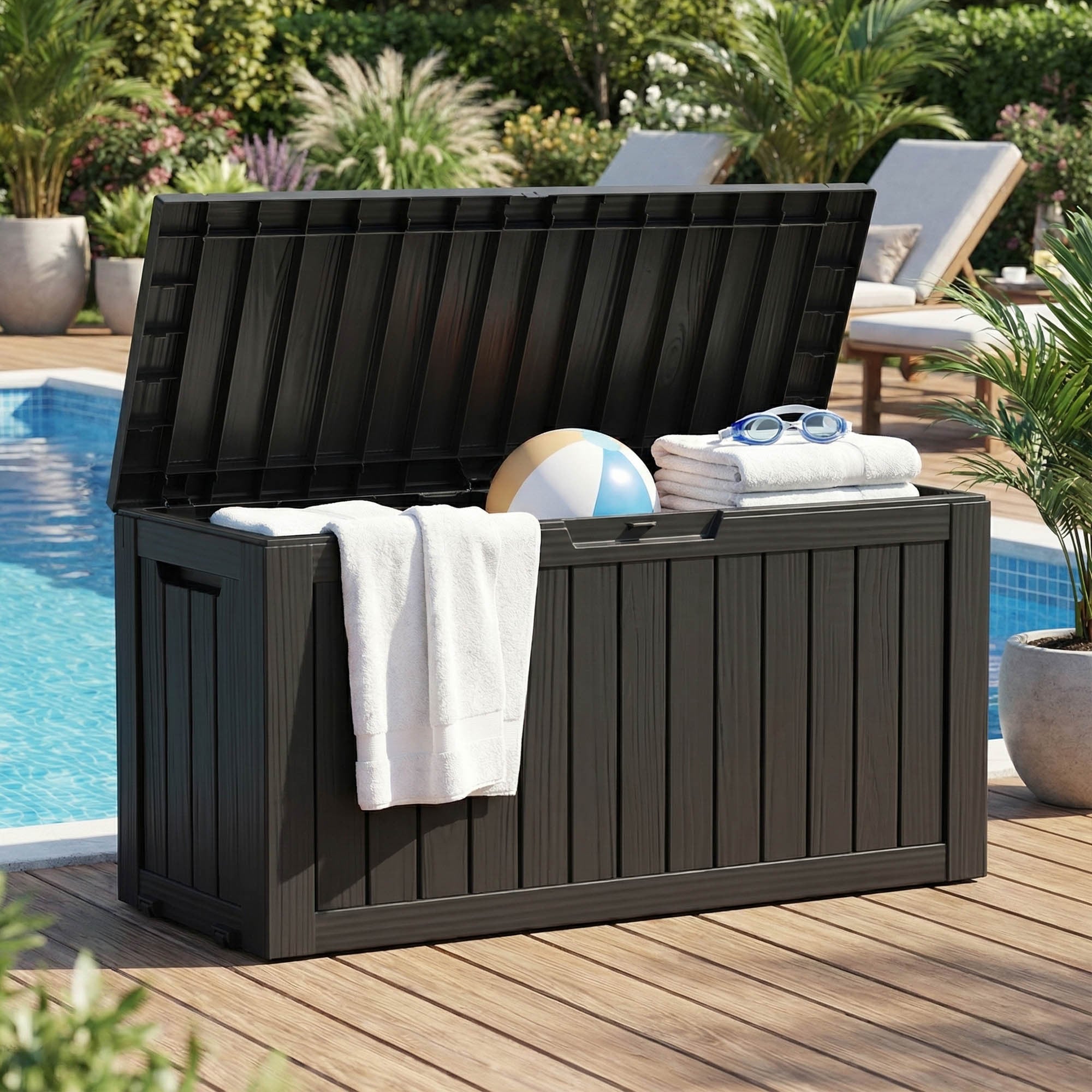 Skrzynia ogrodowa wodoszczelna pojemność 272 litry Czarna
