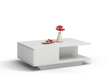 Stolik barowy pod hoker dostępny w sklepie Akord utrzymany w białym kolorze będzie pasował idealnie do pomieszczeń z różnymi kolorami ścian, podłogi czy innych elementów wykończeniowych. Po jego zewnętrznej stronie umieszczone zostały półki, gdzie wygodnie przechowamy naczynia i inne akcesoria. Dopasowanie stolika do systemu mebli CLP pozwala na stworzenie dowolnej aranżacji, zgodnej z projektem lub potrzebami właściciela mieszkania.