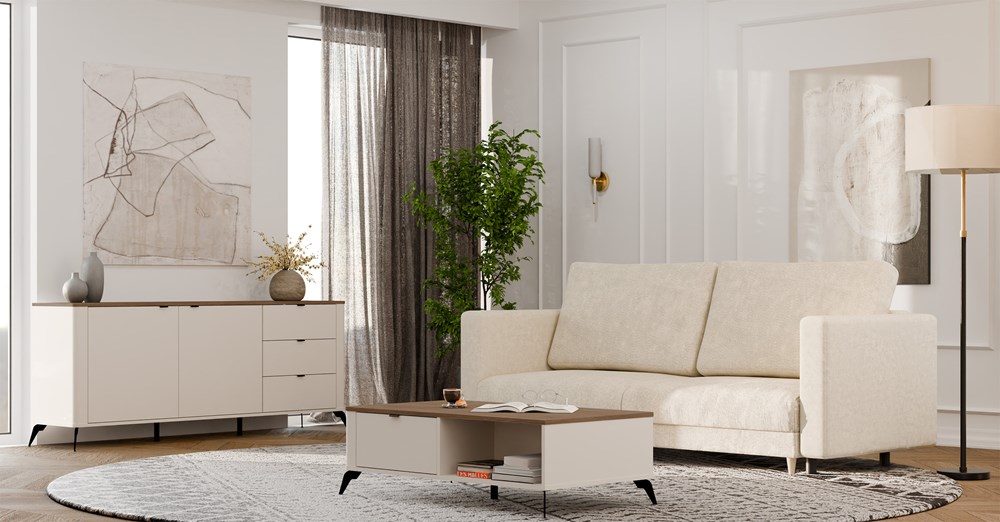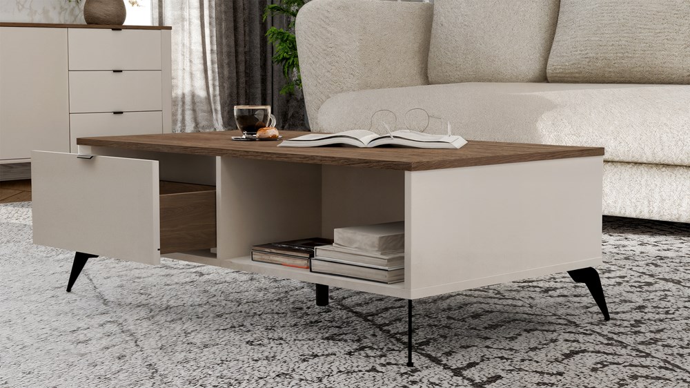 Stolik kawowy CORDOBA to idealne uzupełnienie przestrzeni wypoczynkowej – łączy styl, porządek i funkcjonalność w jednym, kompaktowym formacie. Możesz zestawić go z pozostałymi meblami z kolekcji CORDOBA, tworząc spójną i elegancką aranżację wnętrza.