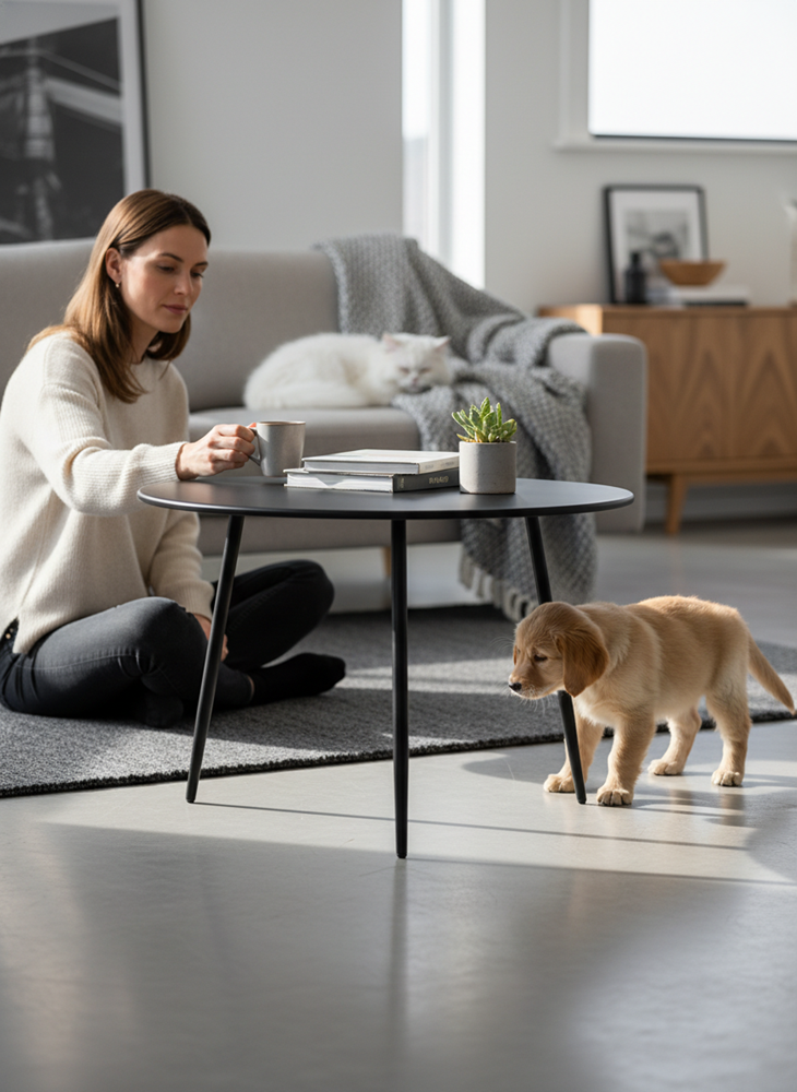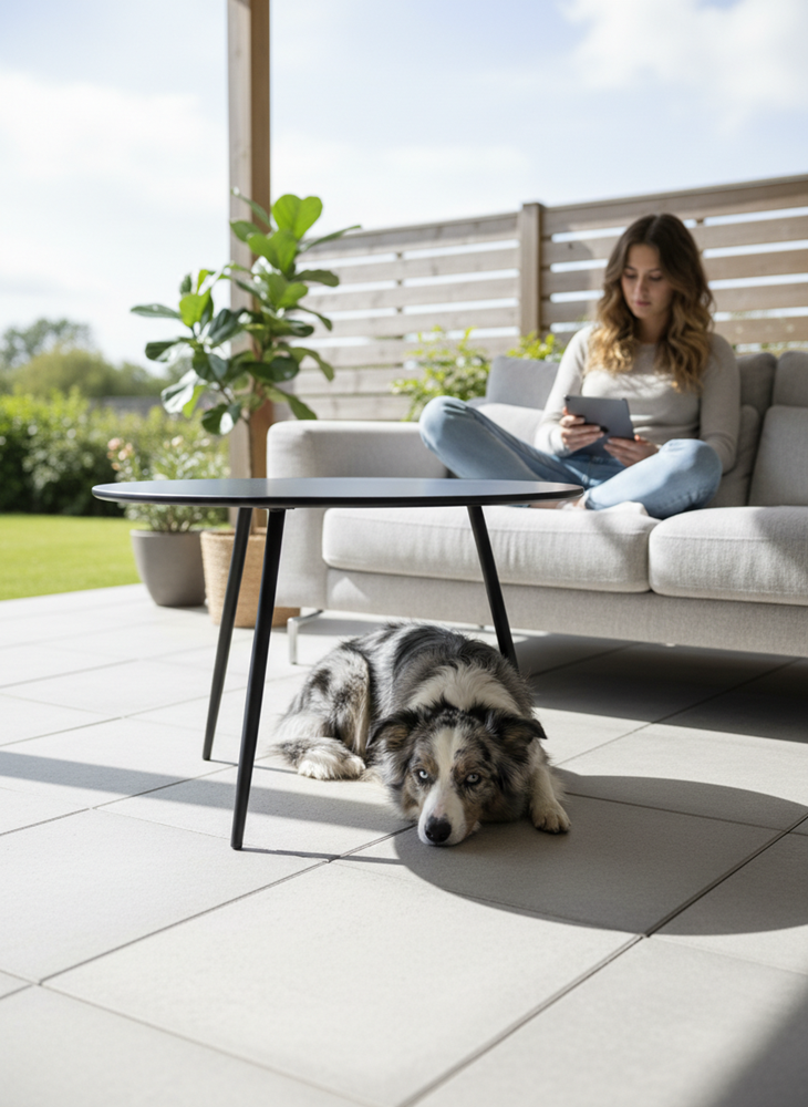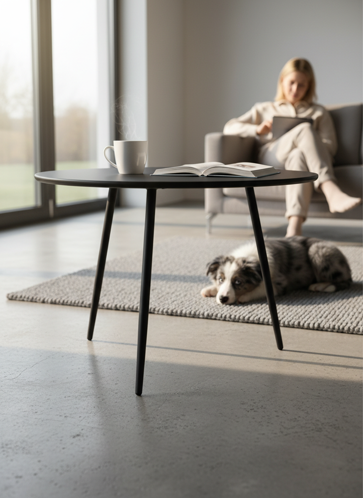 Stolik ogrodowy VIBE to kwintesencja prostoty i elegancji. Jego lekka forma i matowe wykończenie w ciemnym odcieniu szarości sprawiają, że świetnie sprawdzi się zarówno na tarasie, jak i we wnętrzach – jako stolik kawowy, pomocniczy lub nocny. Solidna stalowa konstrukcja gwarantuje stabilność i odporność na warunki atmosferyczne, a kompaktowy rozmiar pozwala wkomponować go w każdą przestrzeń.