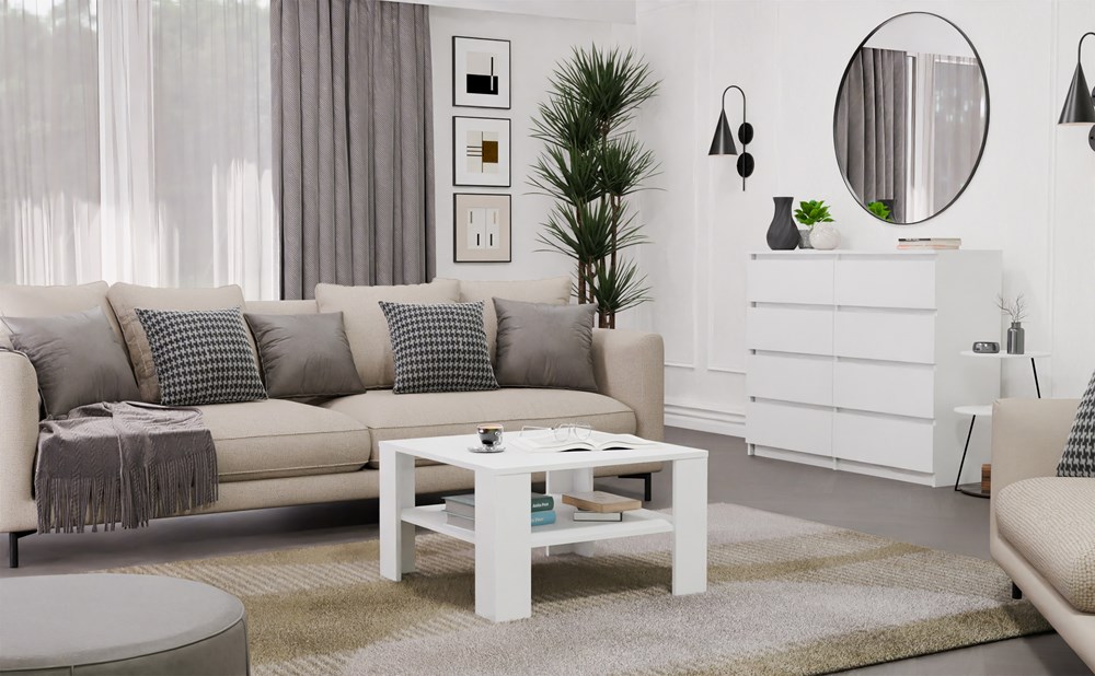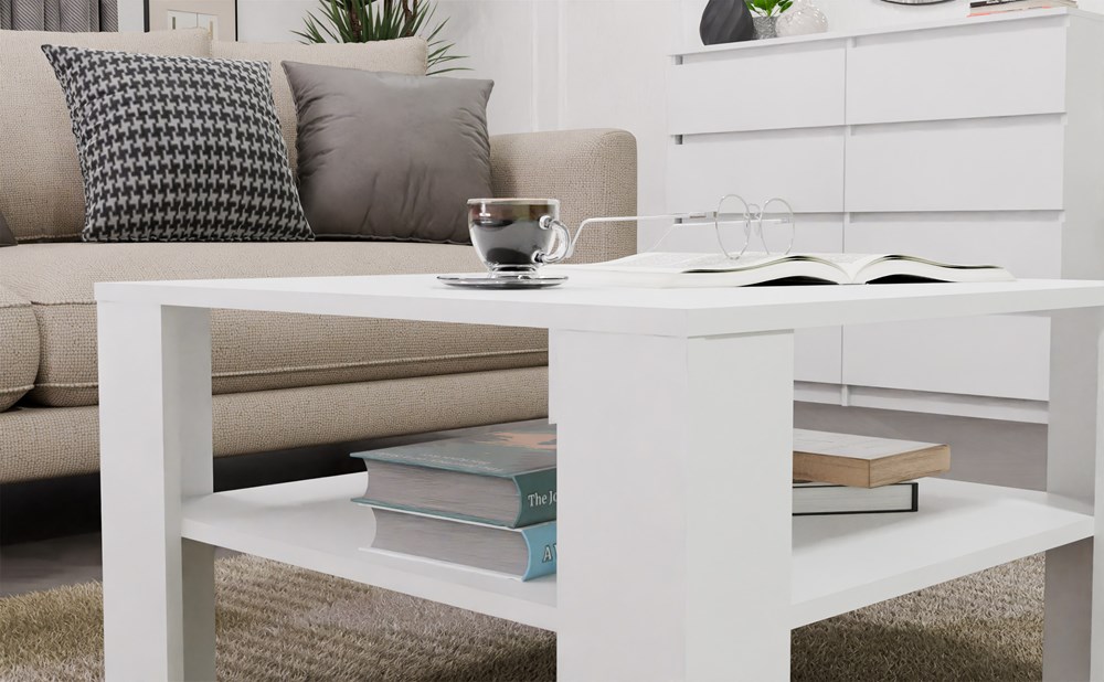 Stolik Kawowy Z Półką Pod Blatem SQUARE BIAŁY Ława Do Salonu Pokoju