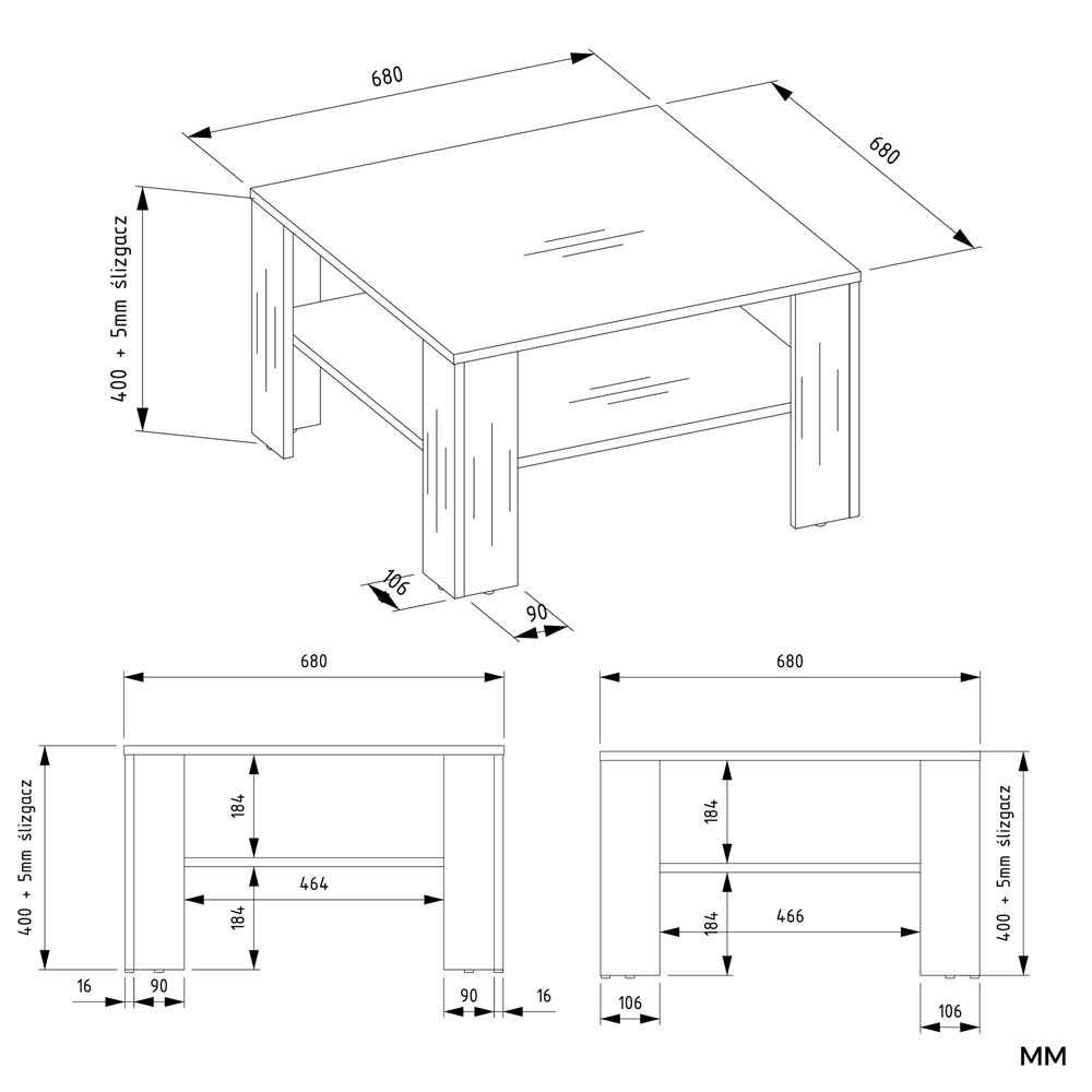 Stolik Kawowy Z Półką Pod Blatem SQUARE DĄB ARTISAN CZARNY Ława Do Salonu Pokoju