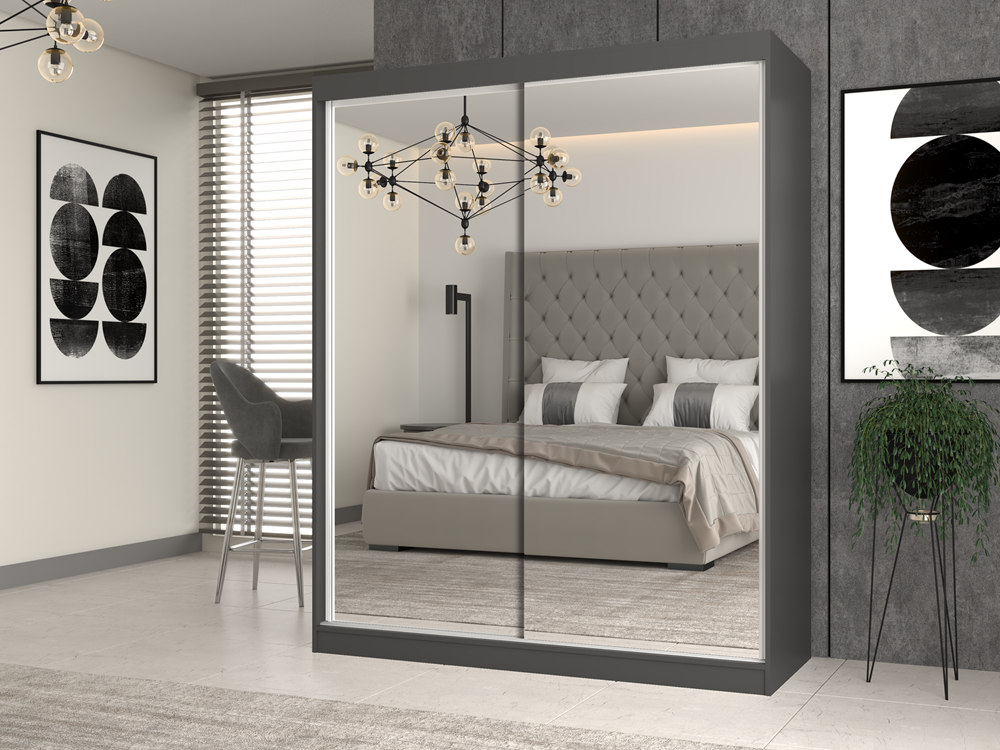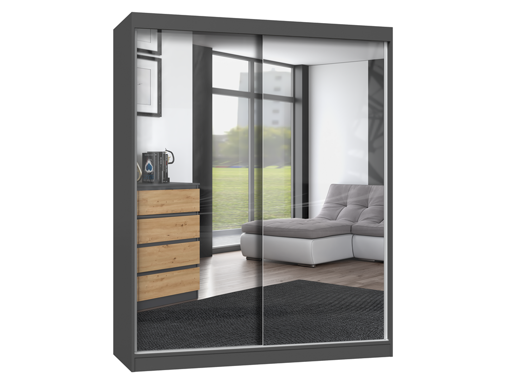 - szafa z przesuwnymi drzwiami na których znajdują się 2 duże lustra
